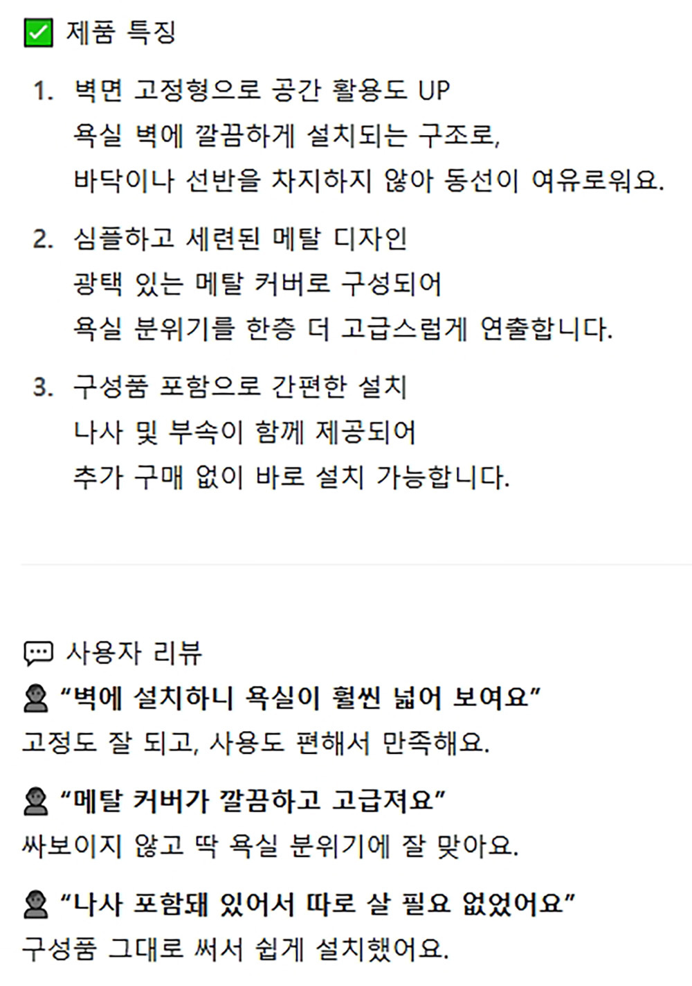욕실 벽에 깔끔하게 설치되는 구조 휴지걸이