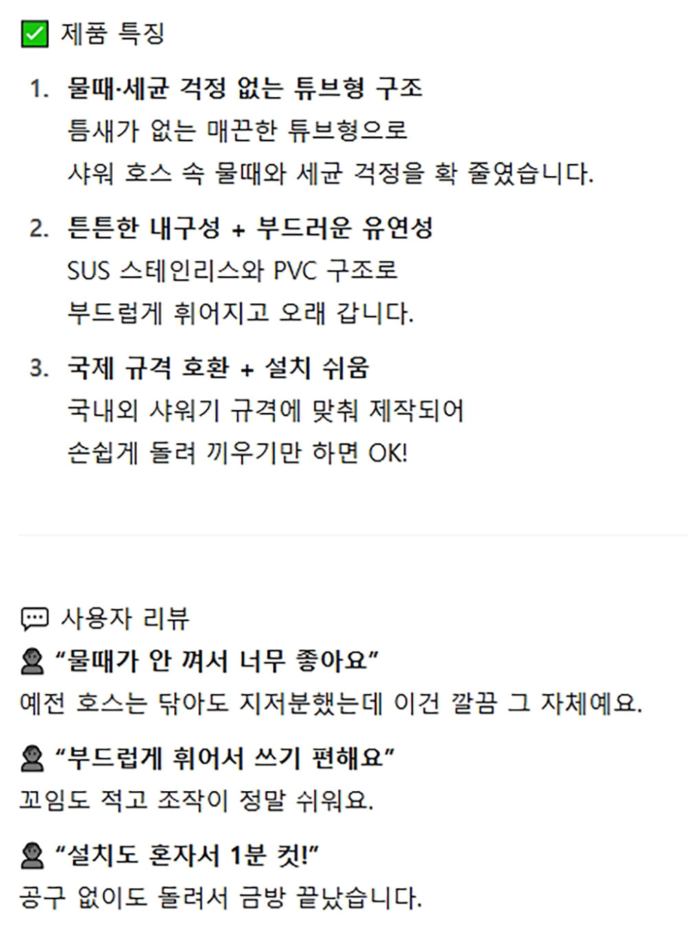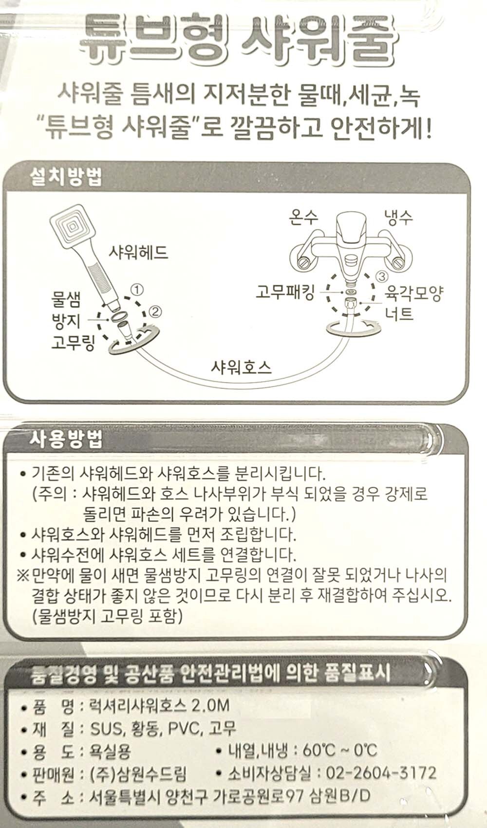 틈새 지저분한 물때 걱정없는 욕실 튜브형 샤워줄 2m