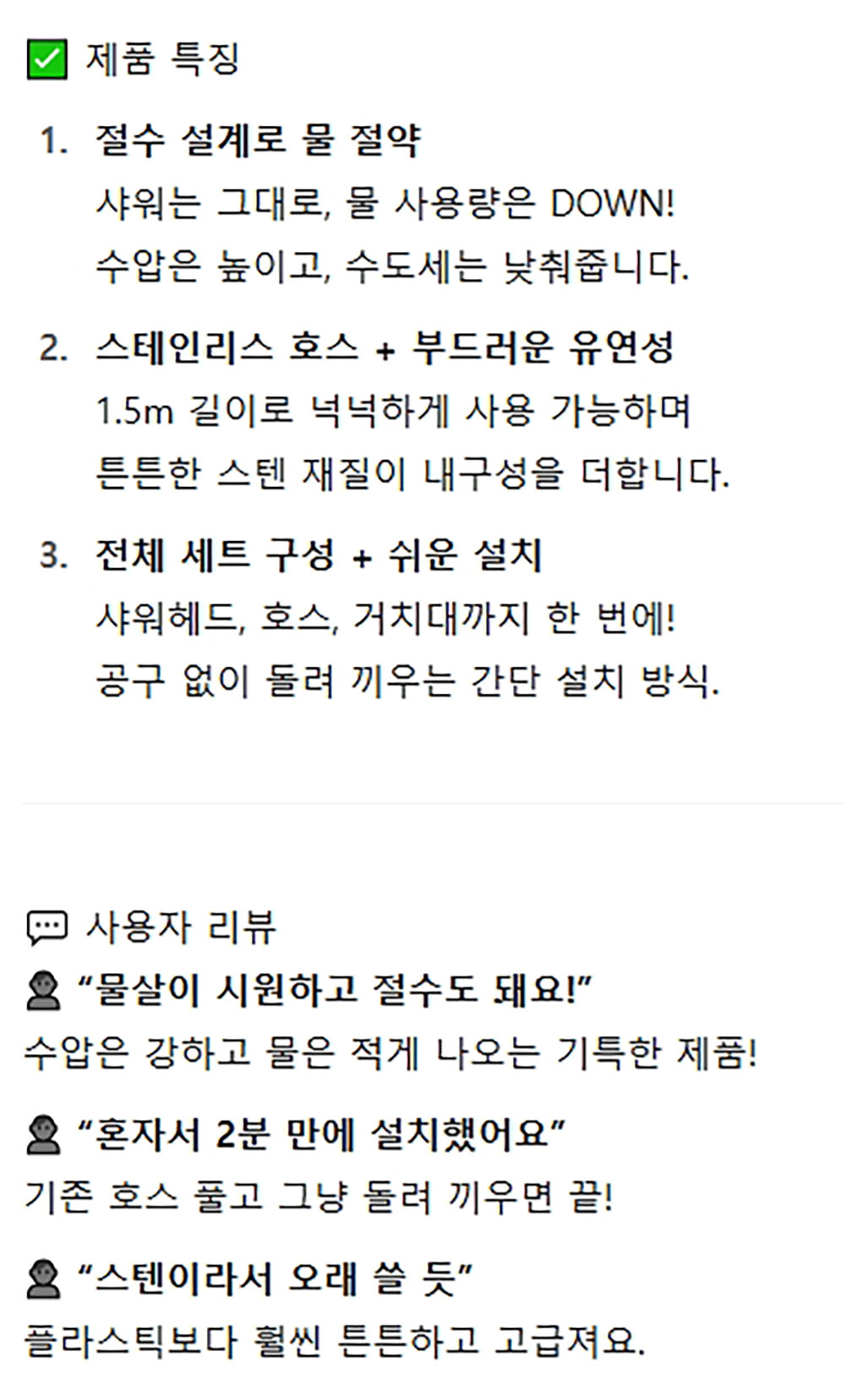 수압 그대로 절수형 욕실 스텐샤워헤드 호스세트 1.5m