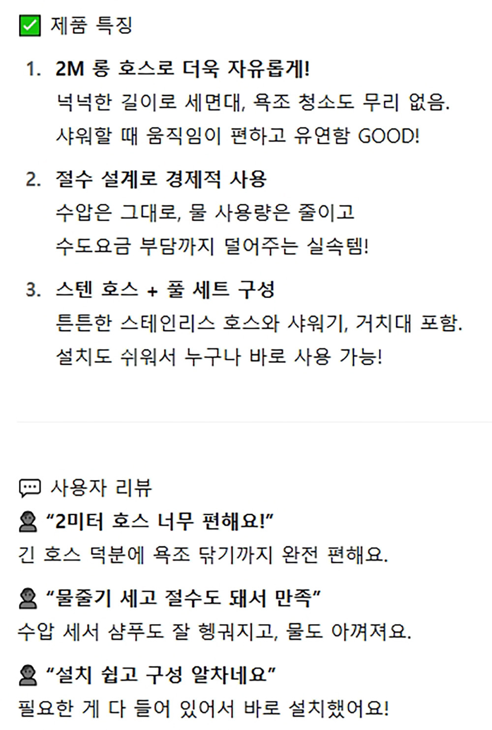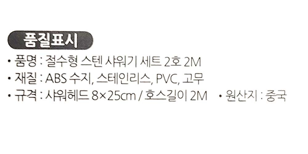 수압 그대로 절수형 욕실 스텐 샤워헤드 호스세트 2m