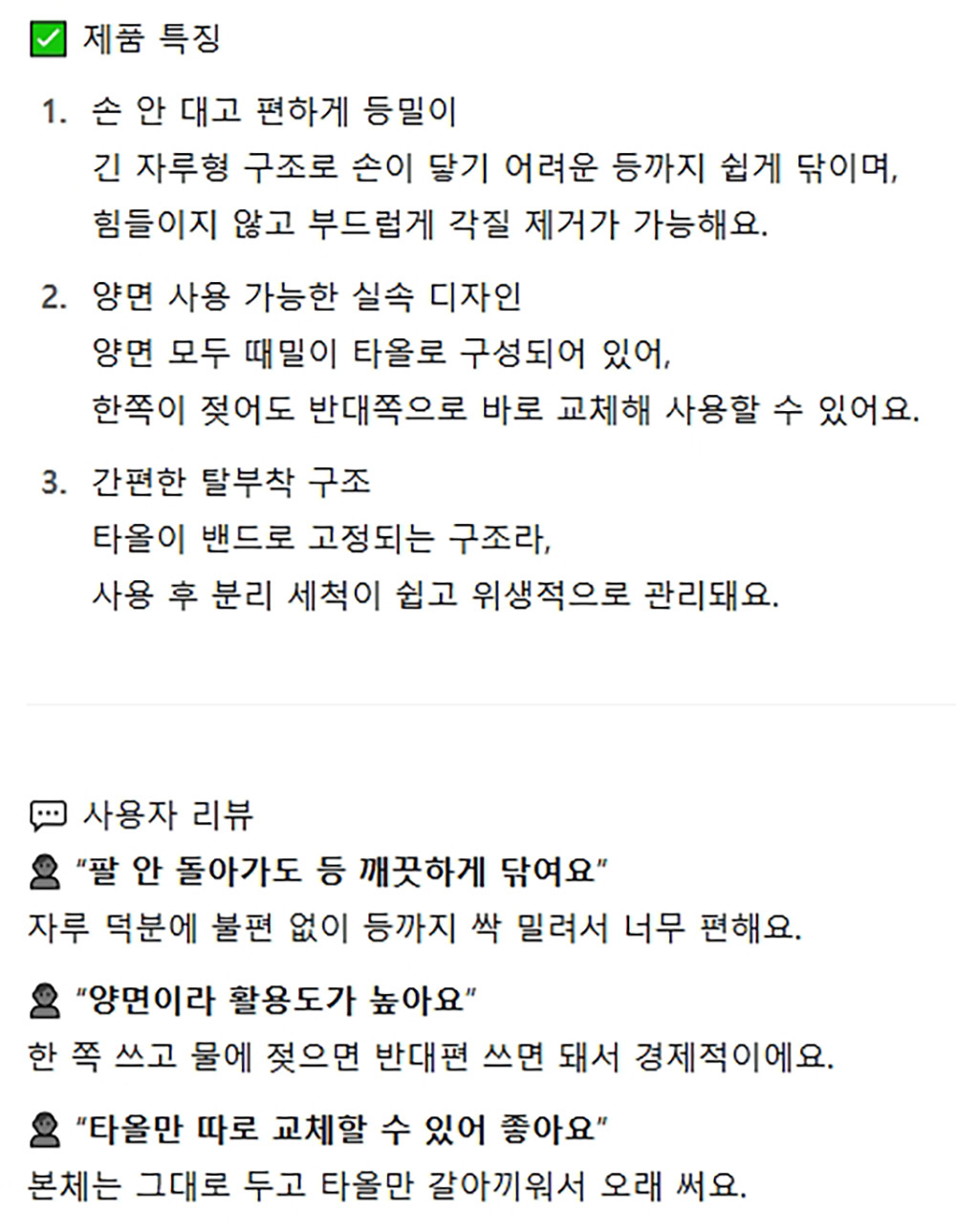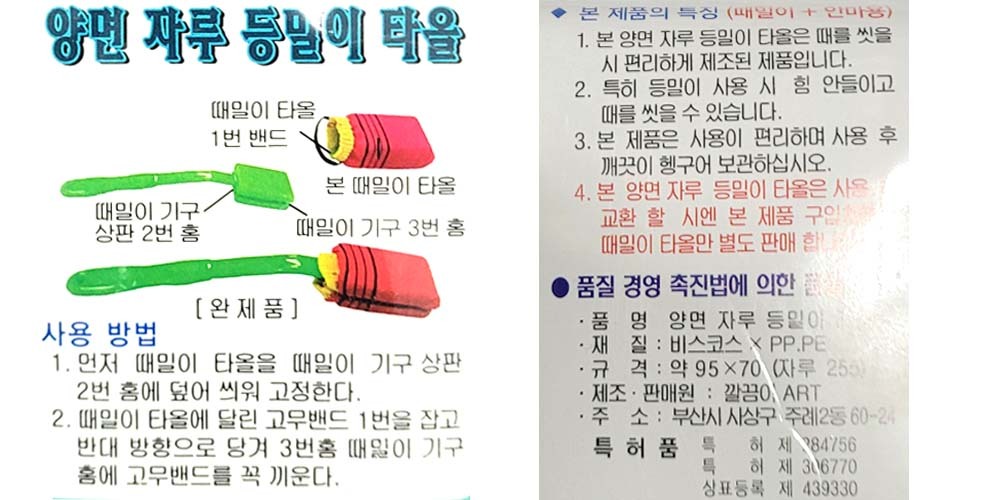 때를 씻을 때 힘 안들이고 편하게 양면 등밀이 타올