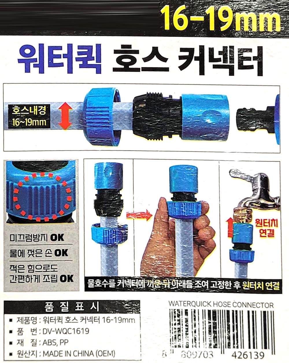 적은힘으로 간편하게 원터치연결 호스 커넥터 16-19mm