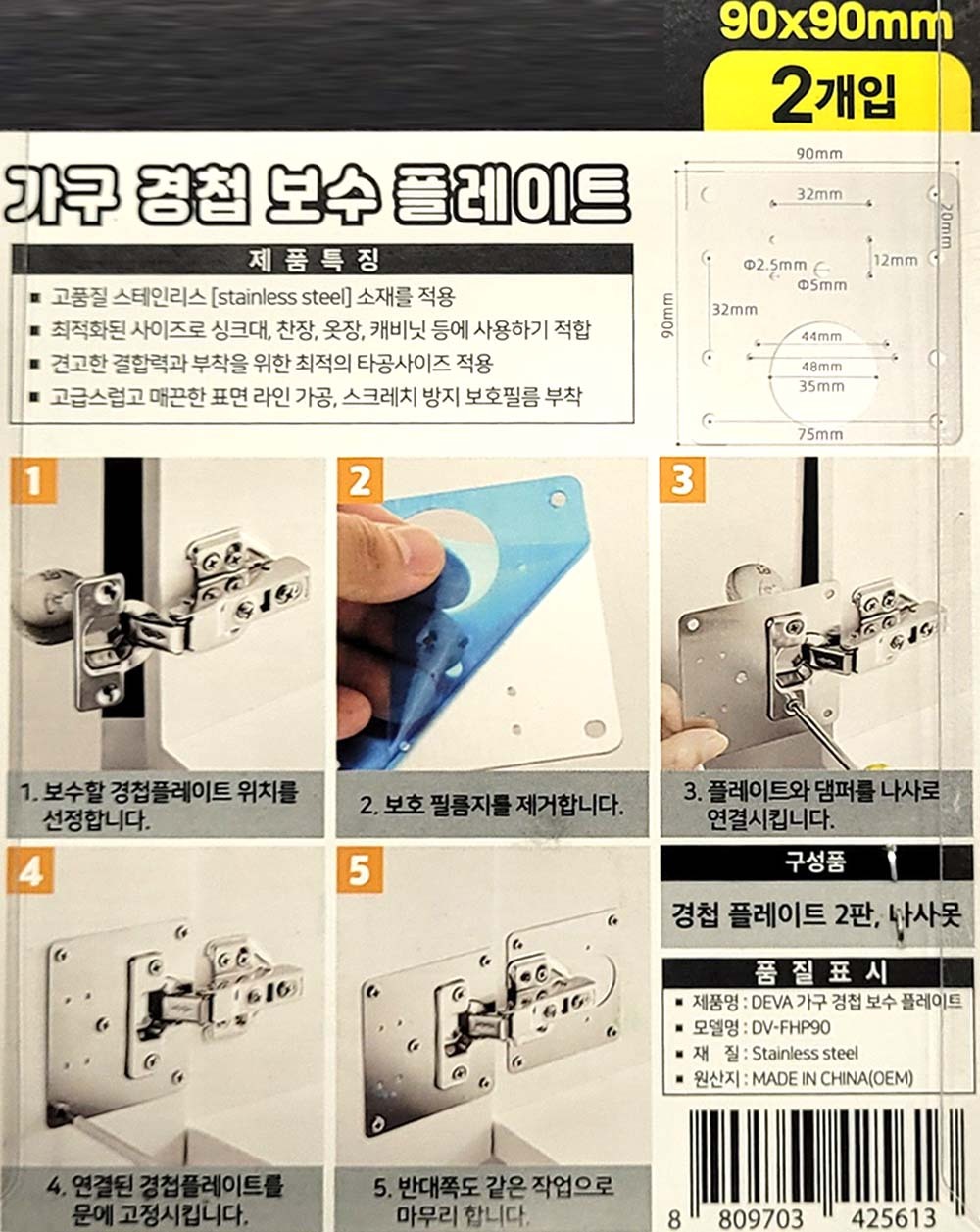 싱크대 찬장 옷장 캐비닛 경첩 수리 보수 플레이트