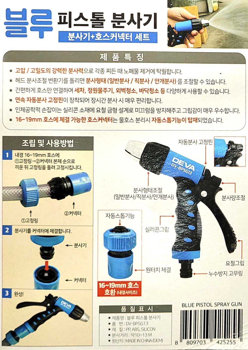 세차 청소 화단급수 직분사 안개분사 피스톨 분사기