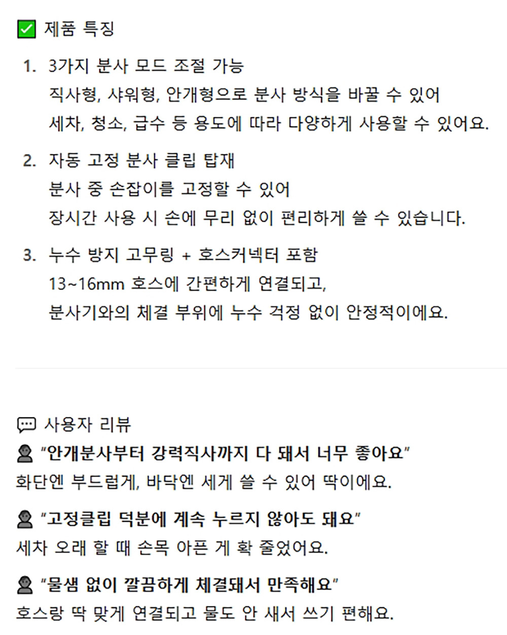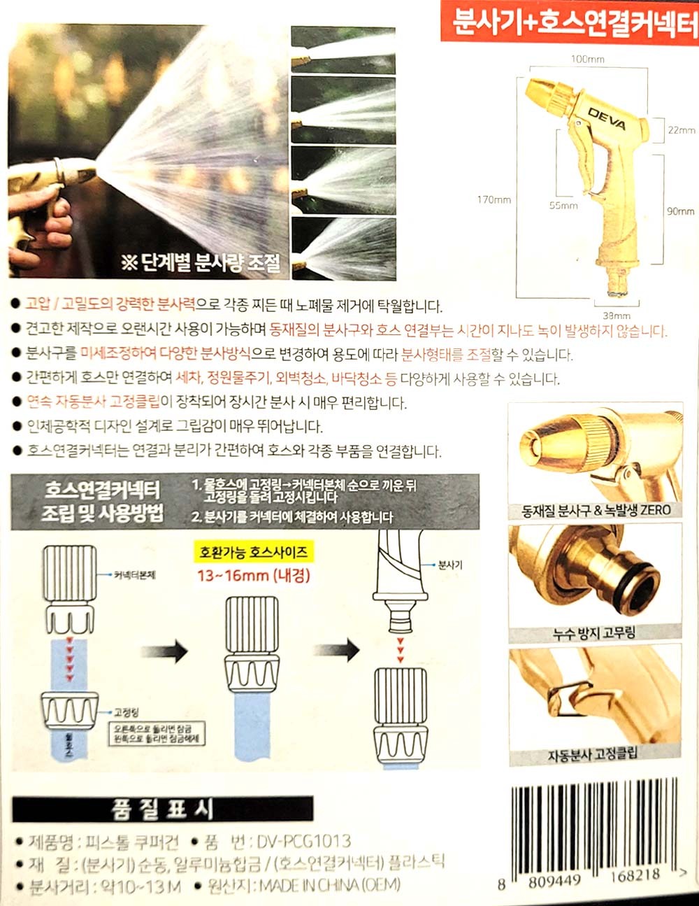 3가지 분사모드 누수 방지 고무링 피스톨 쿠퍼건