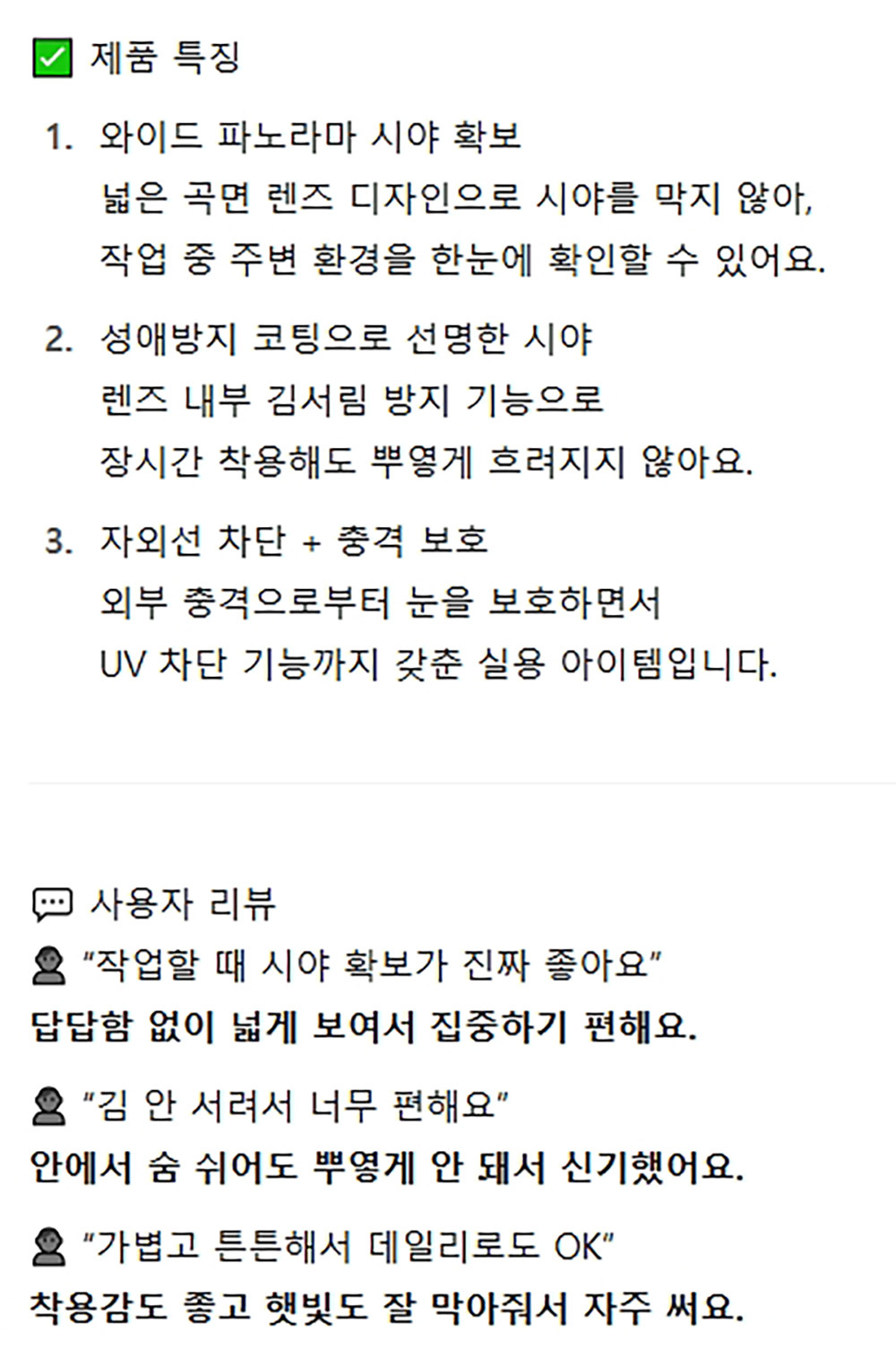 시야 향상에 효과적인 성애방지 작업 보호안경 검정