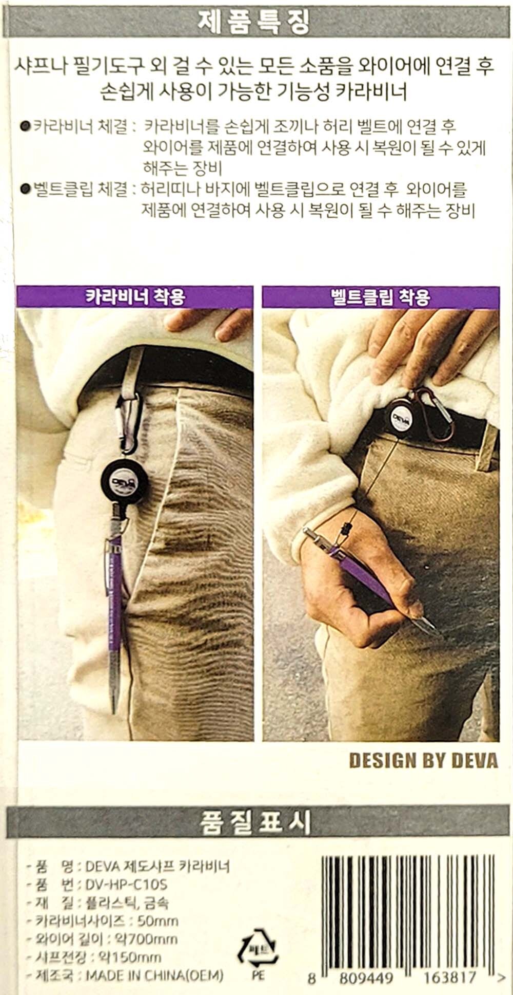 손쉽게 조끼나 허리 벨트에 연결 샤프 카라비너