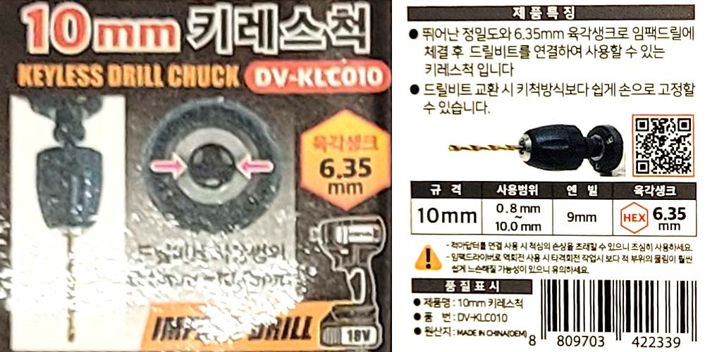 드릴비트를 연결하여 사용할 수 있는 키레스척 10mm