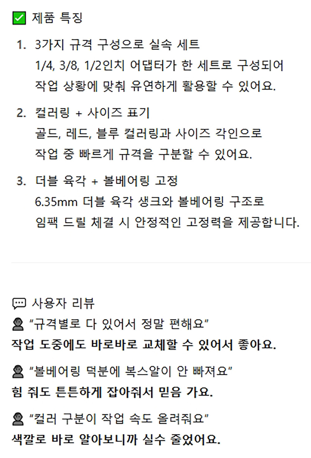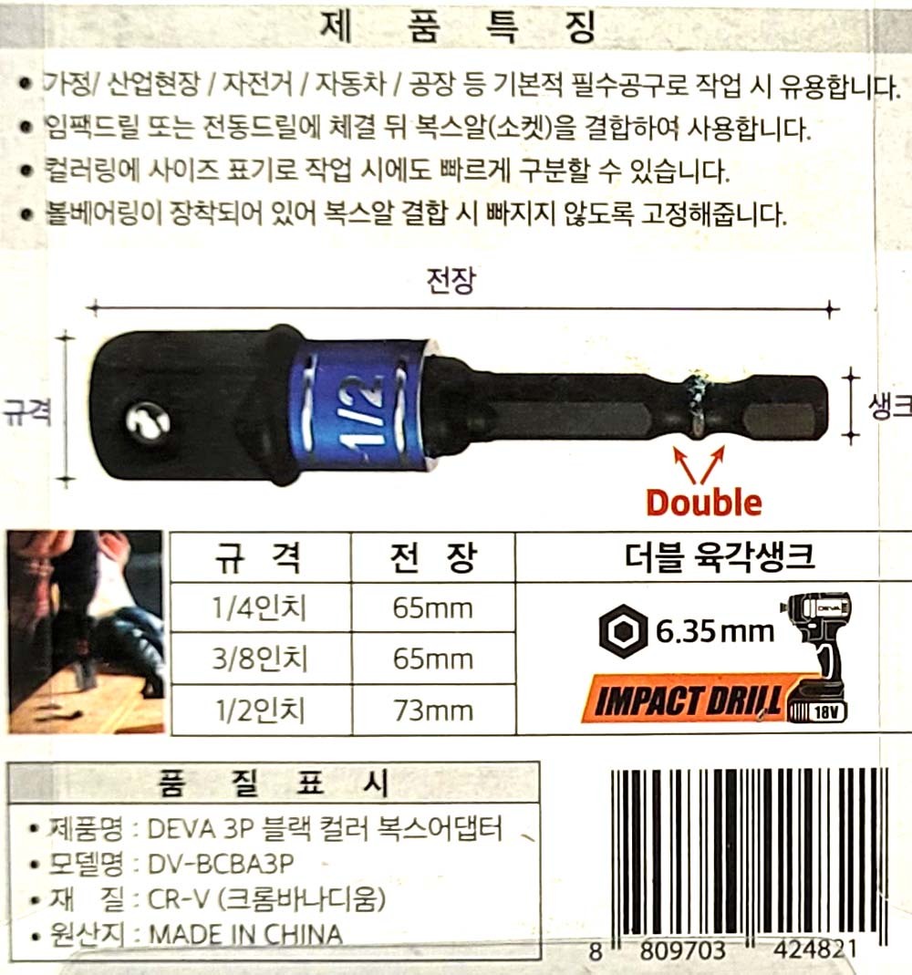 컬러링타입 볼베어링 임팩드릴 체결 복스아답타 3P