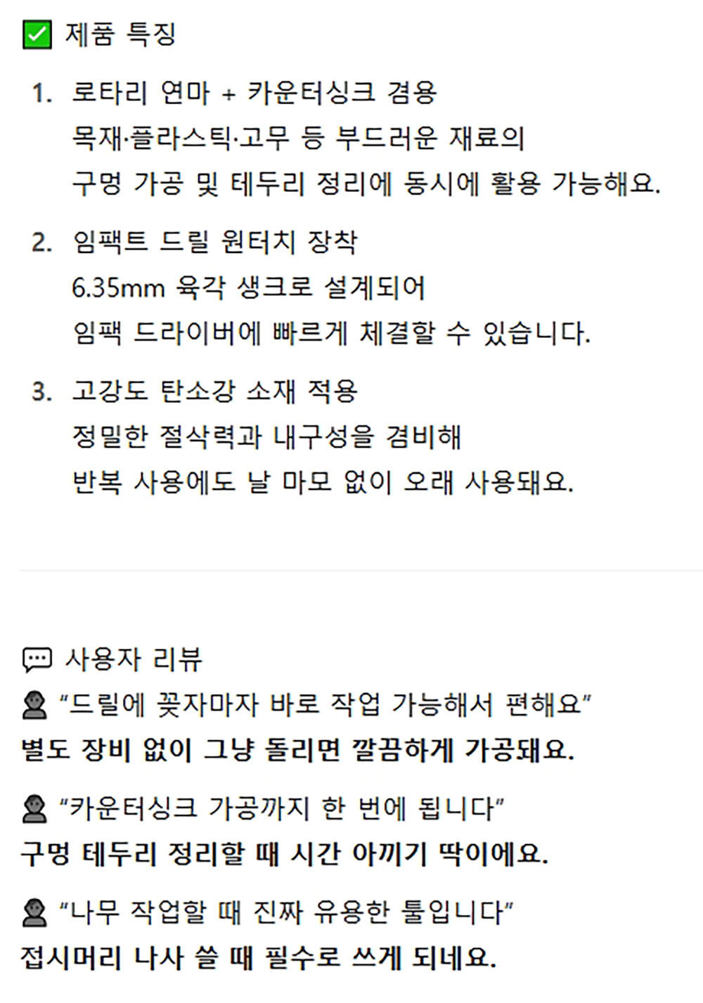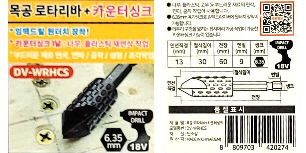 부드러운 재료 연삭 연마 공작작업 목공 카운터싱크