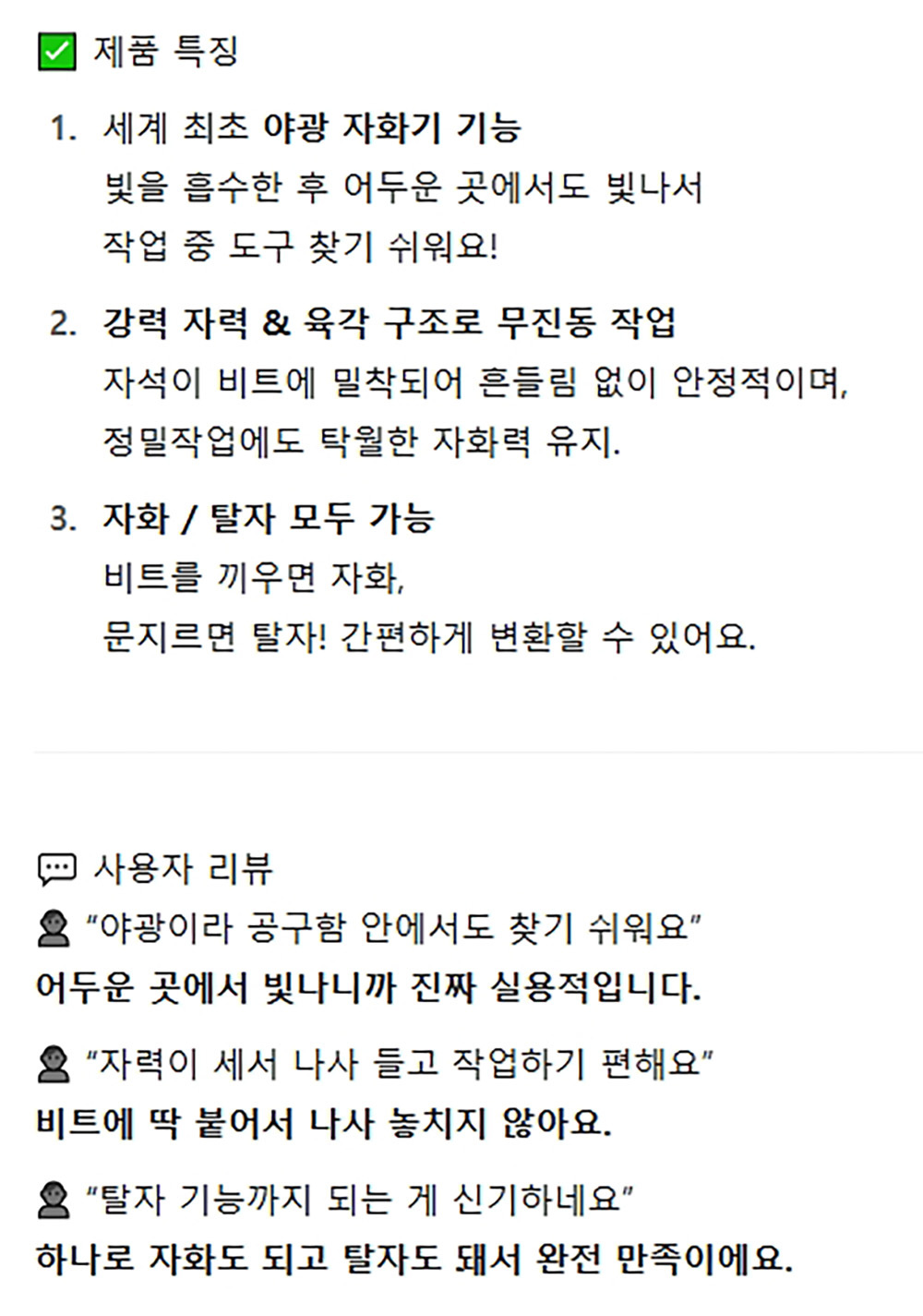 강력한 자력 무진동 작업가능 육각면구조 야광 자화기