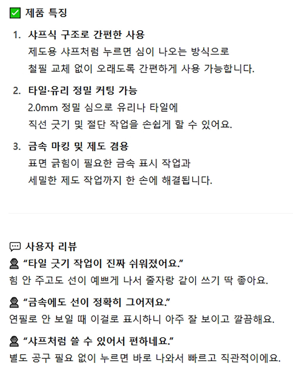 판금 작업시 판금재료에 금을 그을 용도 샤프식 커터