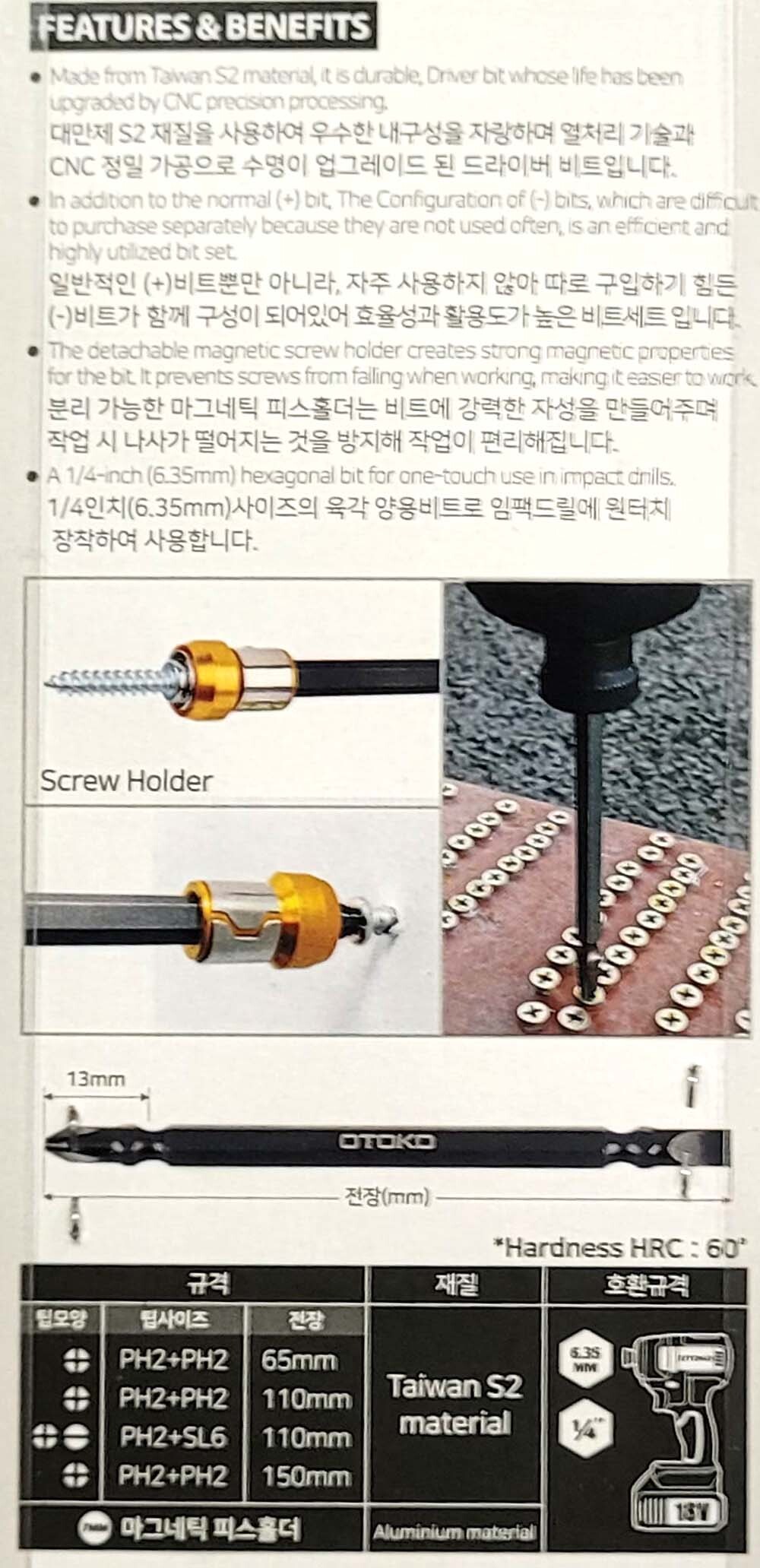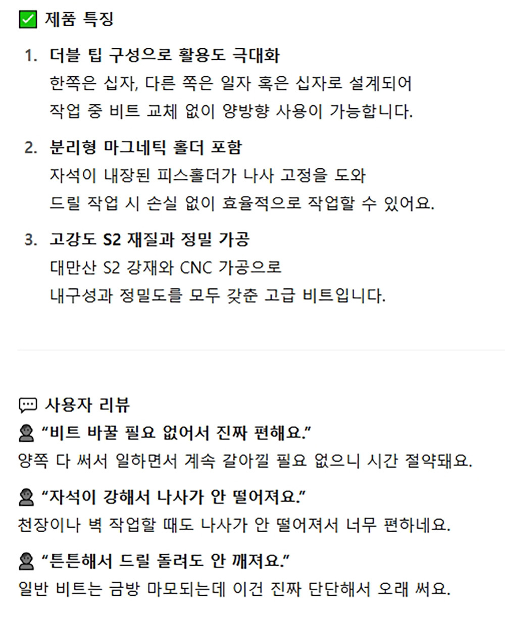 임팩드릴에 원터치 장착하여 사용하는 더블 파워 비트