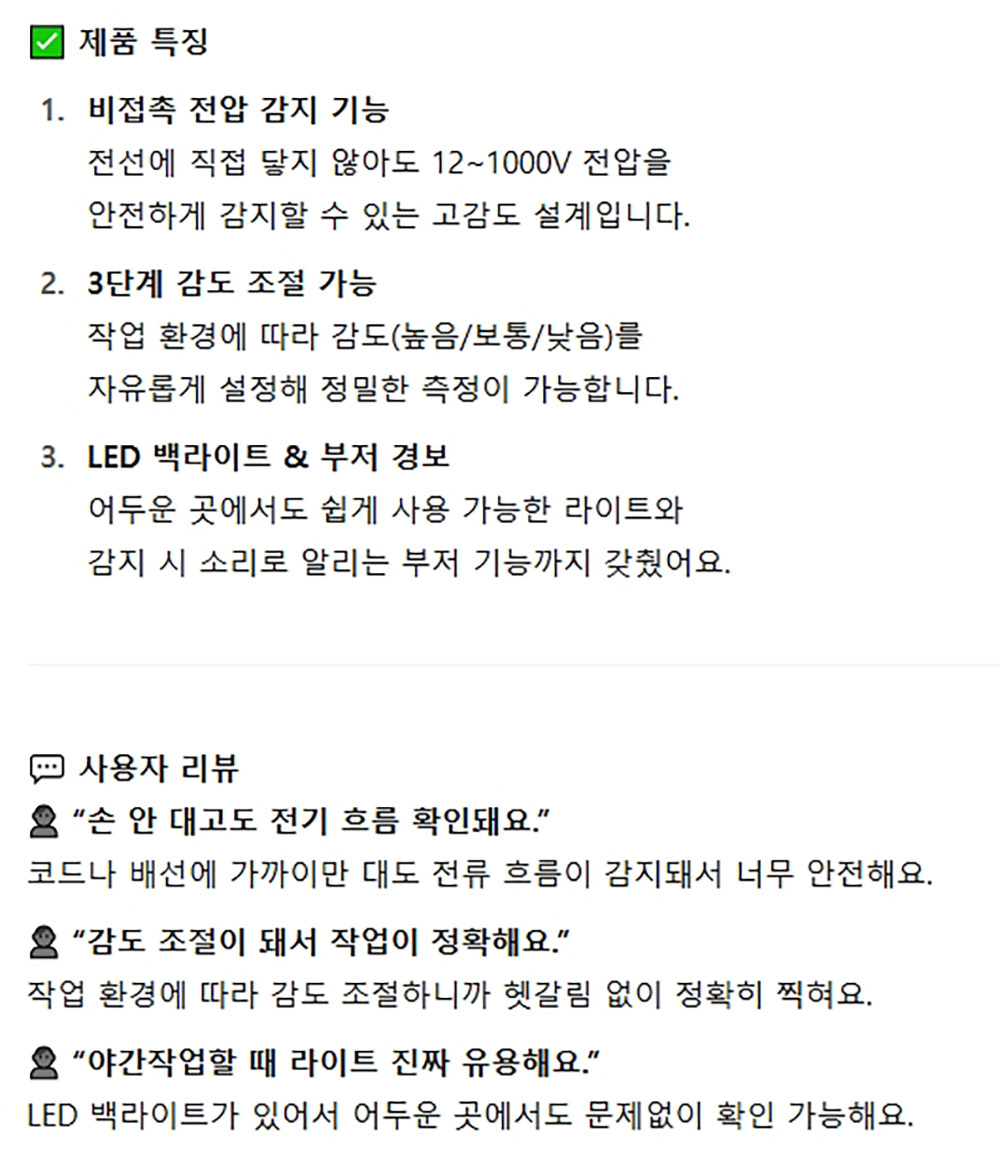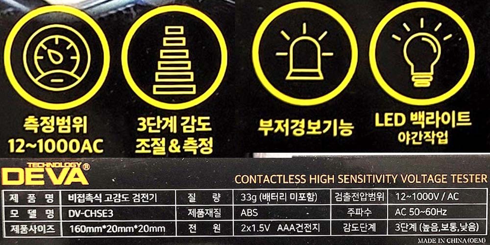 3단계 감도조절 LED 백라이트 비접촉식 고감도 검전기