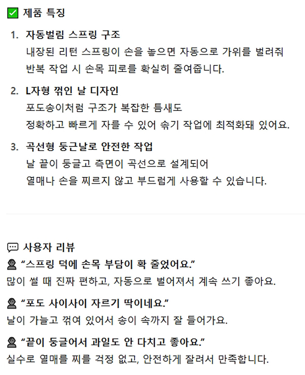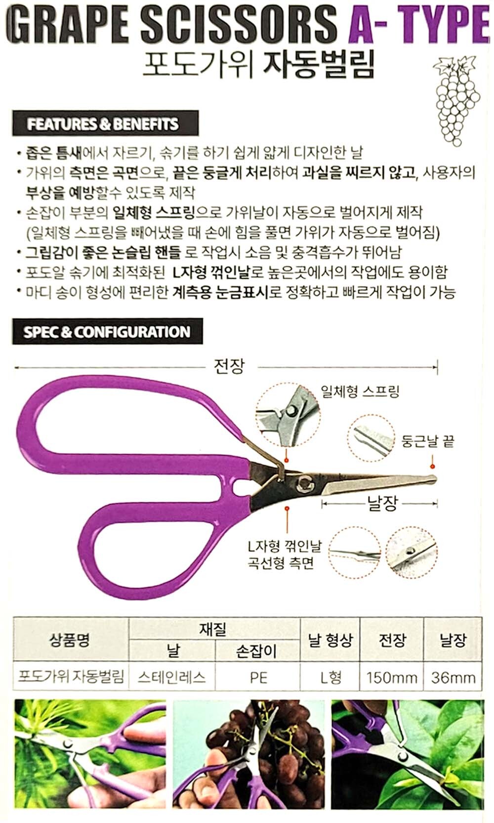 자동벌림 스프링구조 포도알 솎기 적합한 가위 150mm
