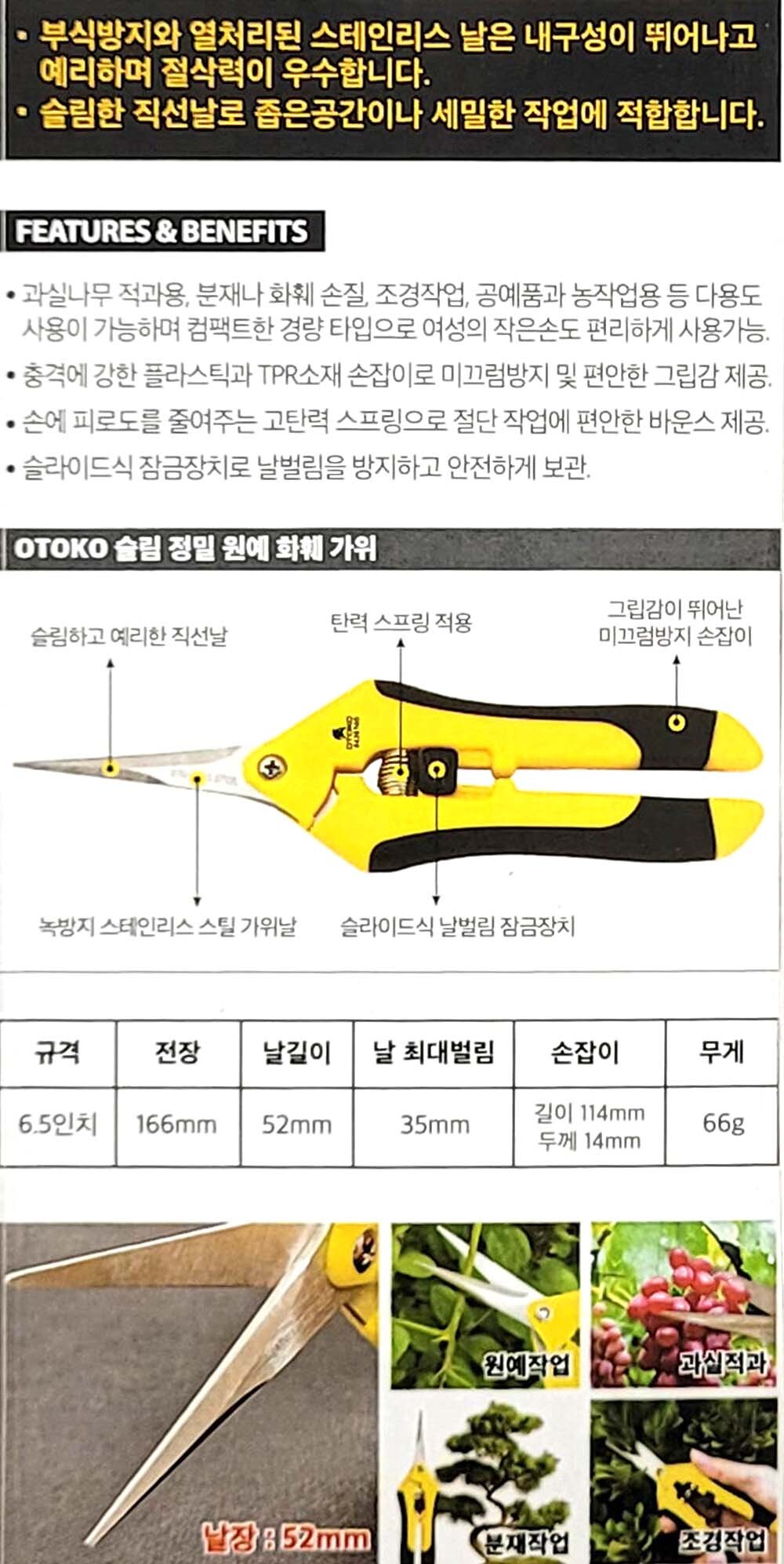 작은손도 편리하게 사용 슬림 정밀 원예 가위 166mm