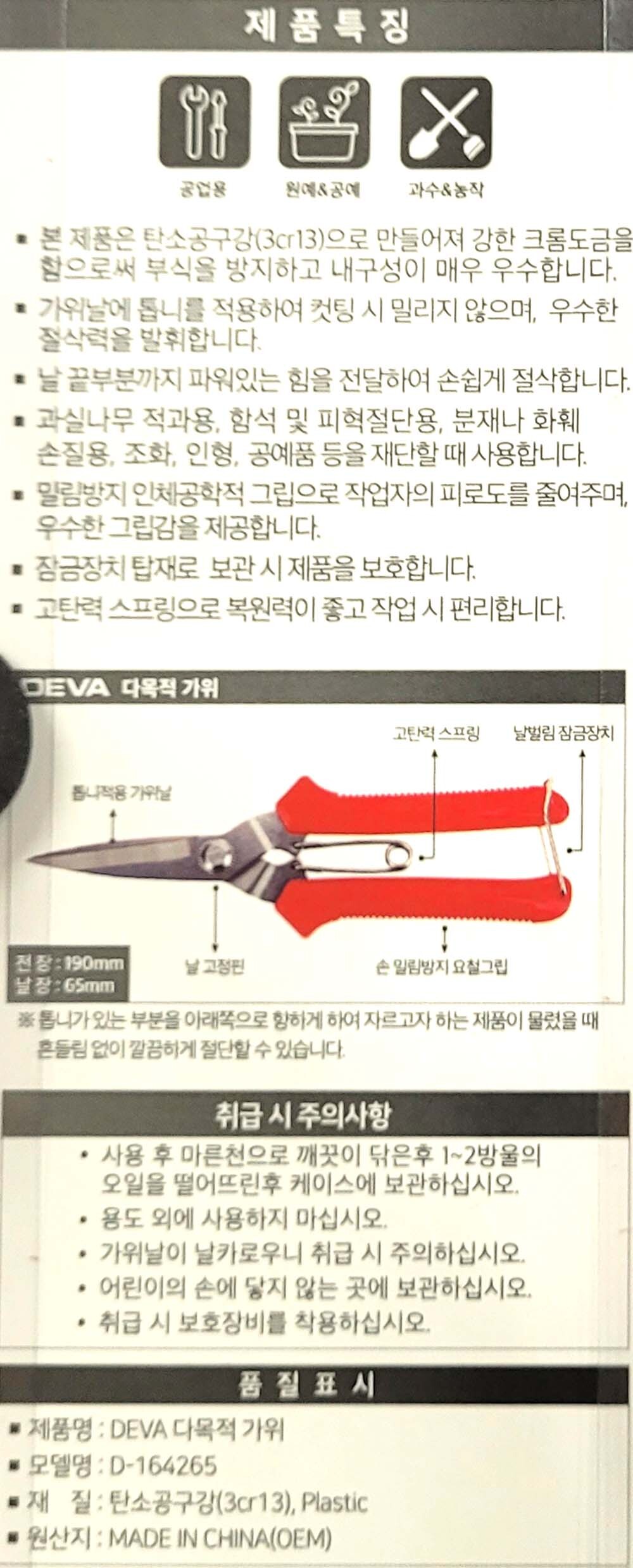 공업용 원예 공예 과수 농작 다목적가위 190mm