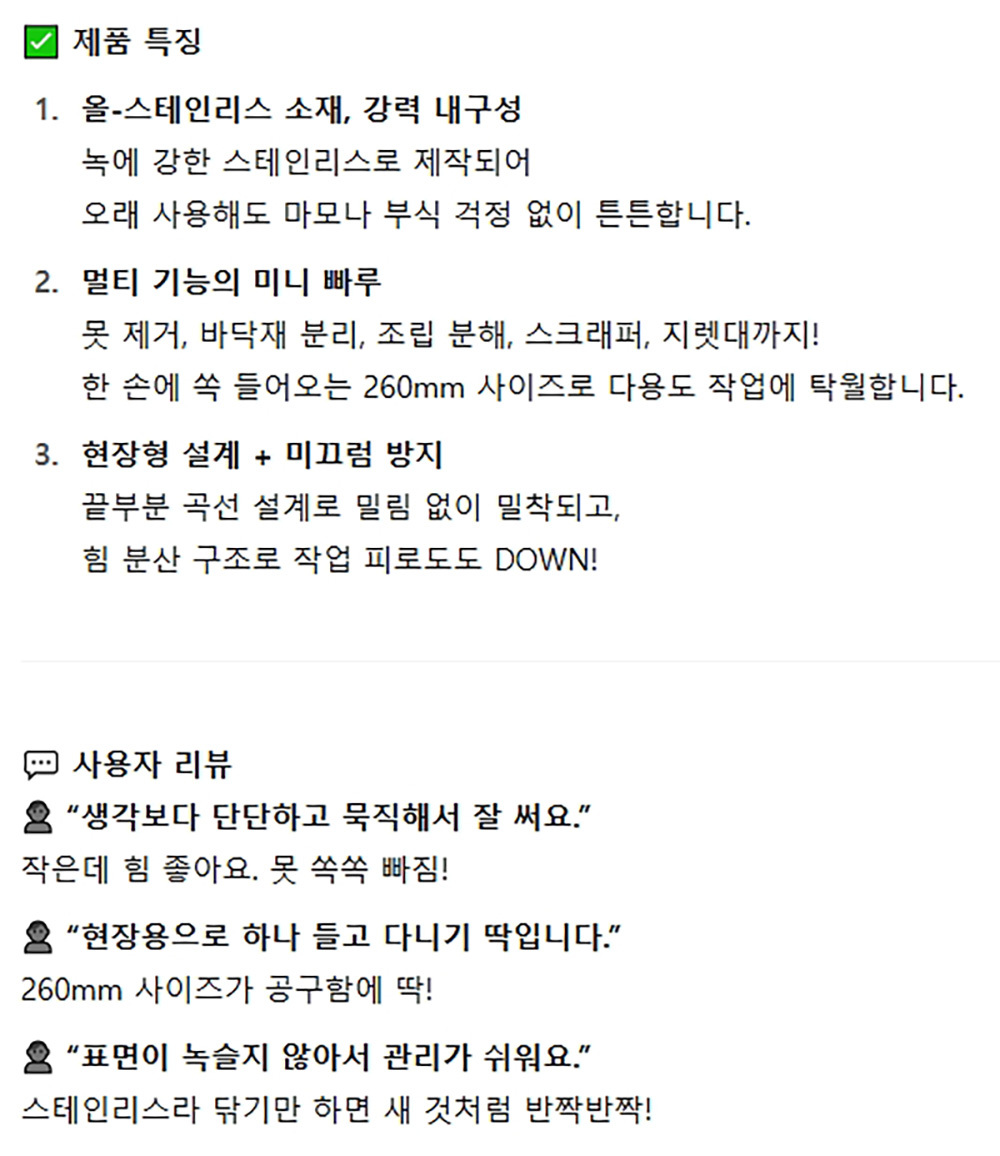 못제거 지렛대작업 스크래퍼 스텐레스 미니빠루 260mm