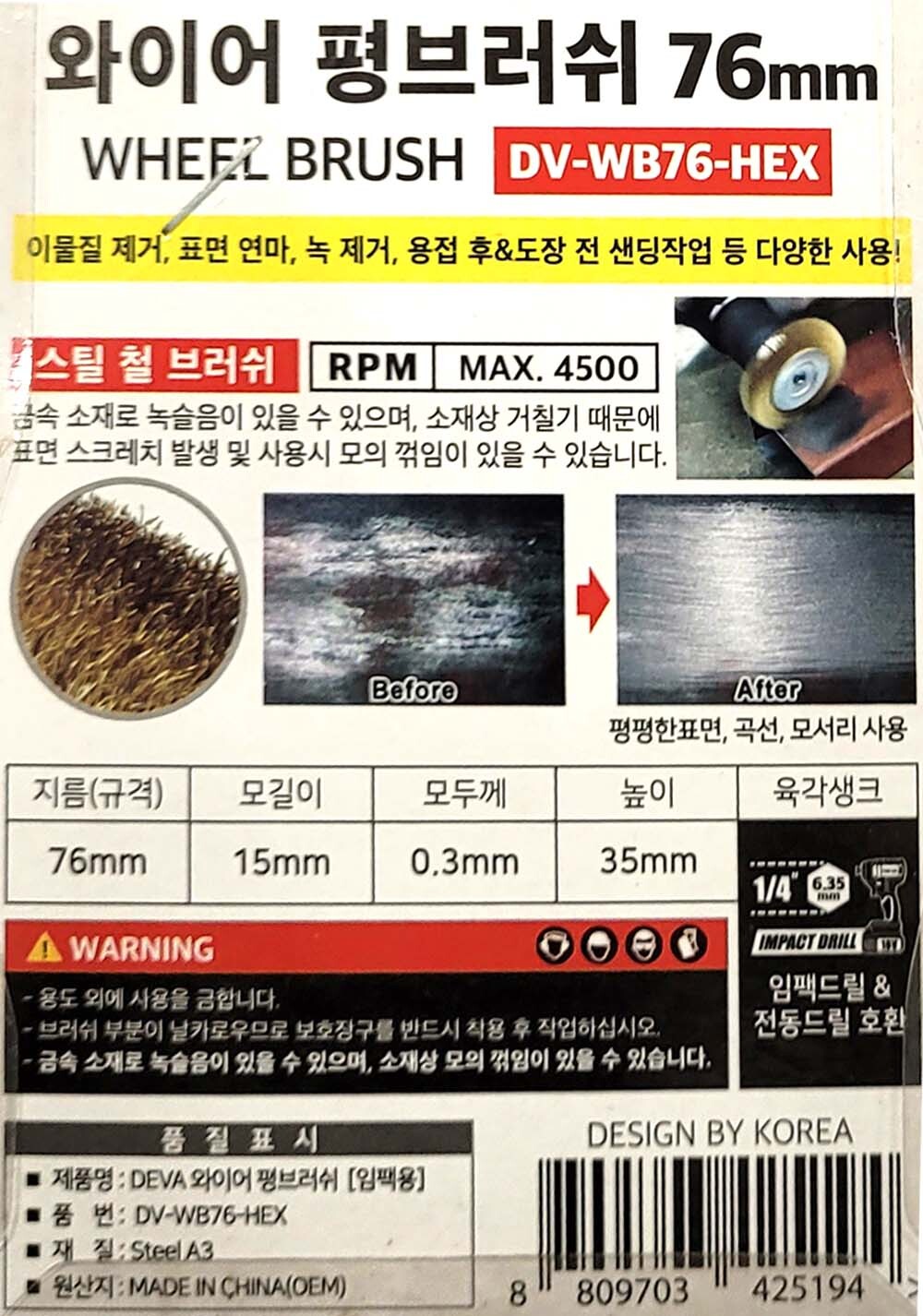 이물질제거 표면연마 샌딩작업 스틸 철브러쉬 76mm