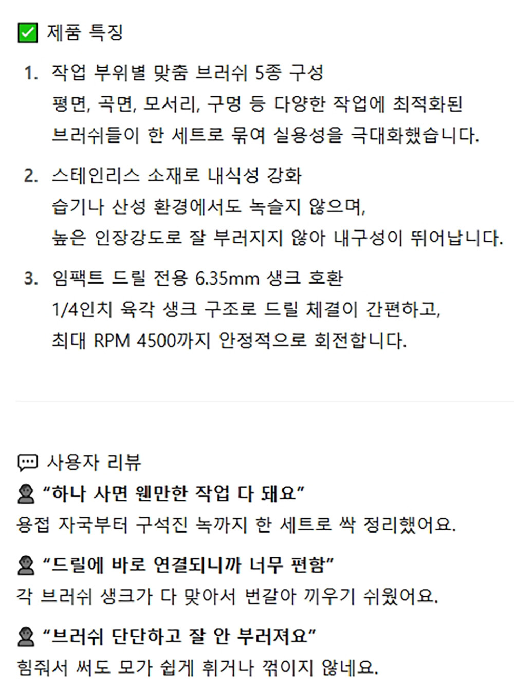 알칼리 수분에 강하며 잘 녹슬지 않는 스텐 브러쉬 5P