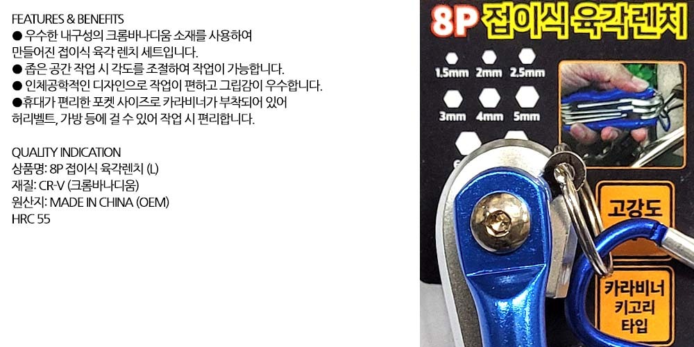 카라비너 키고리타입 고강도 접이식 육각렌치 대 8P