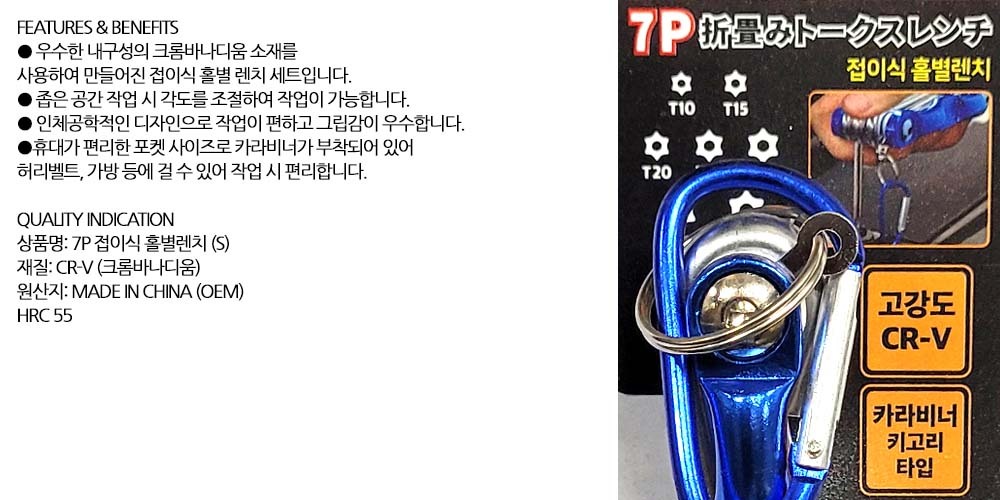카라비너 키고리타입 고강도 접이식 홀별렌치 소 7P