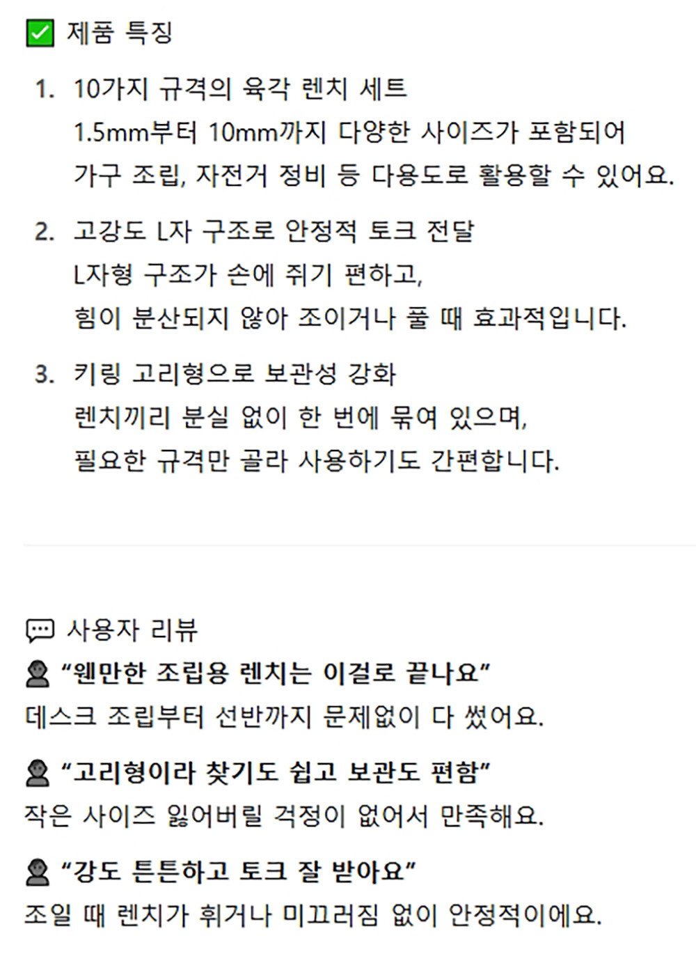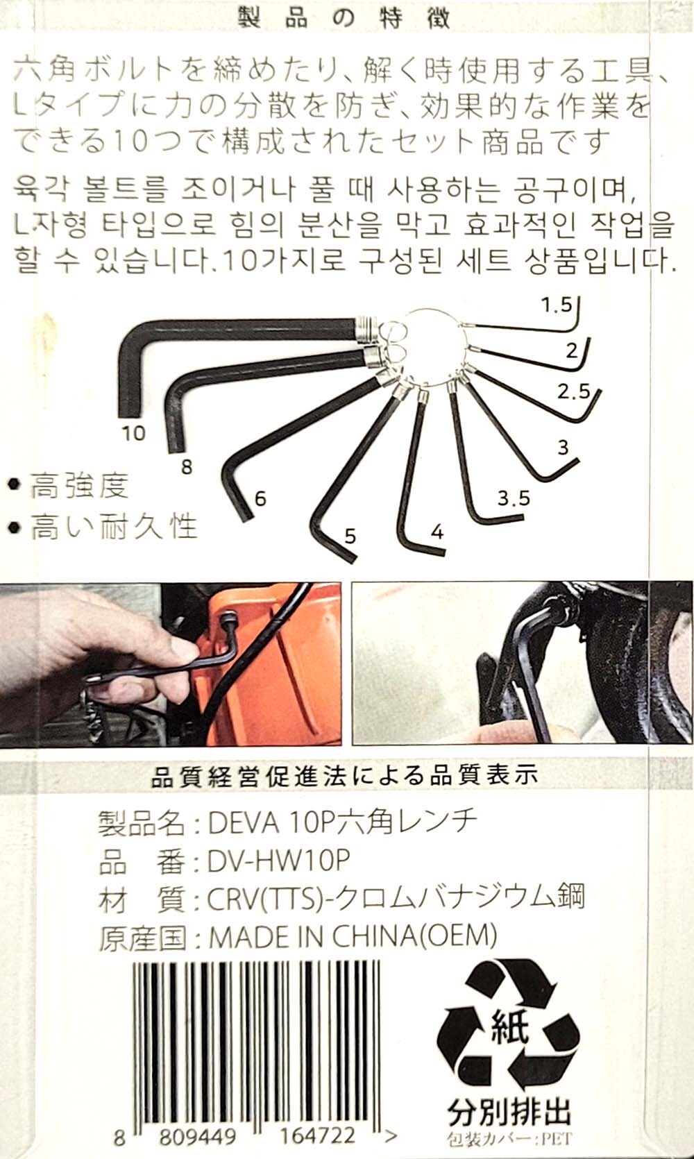 육각볼트 조이거나 풀때 사용하는 육각렌치 10종세트