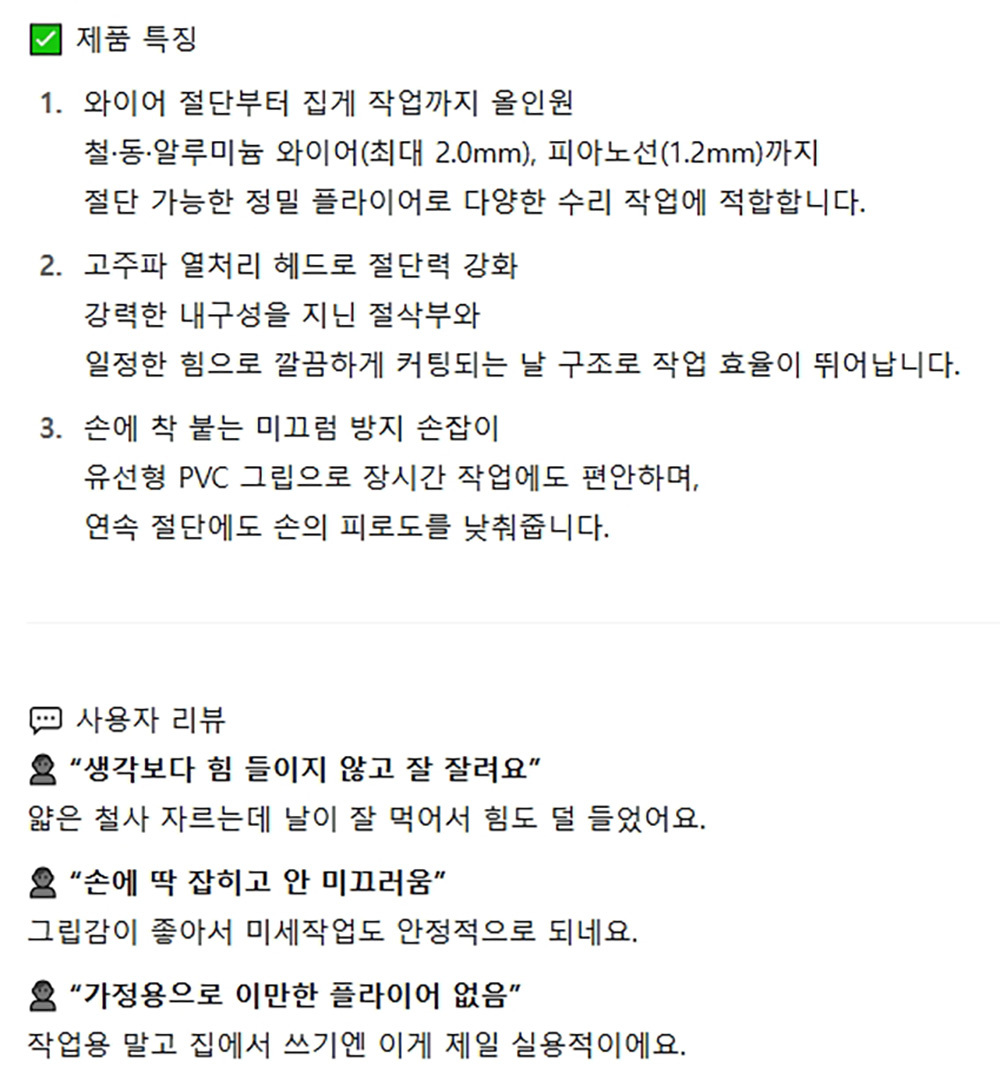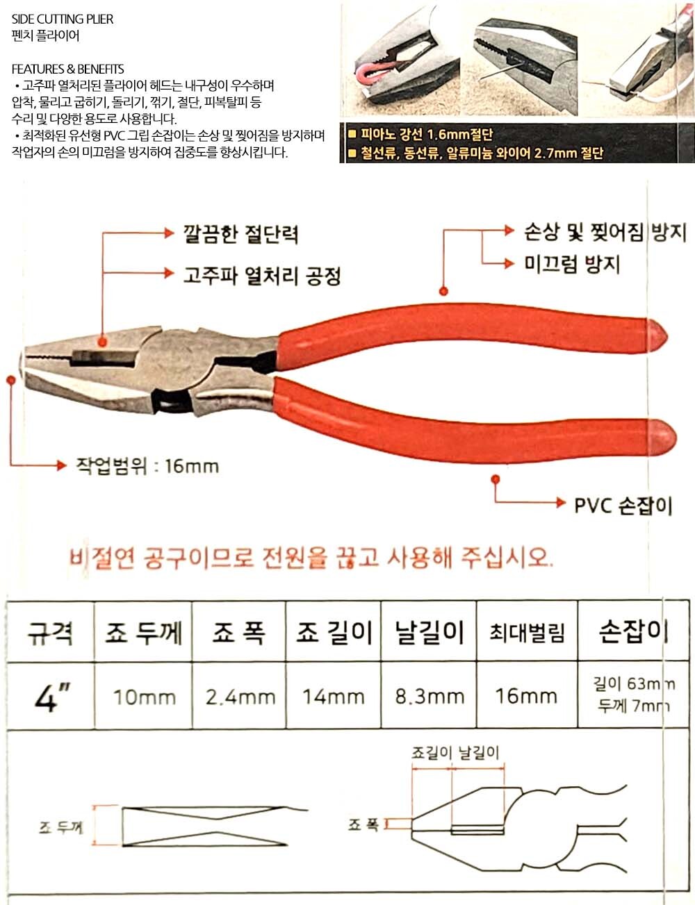 깔끔한 절단 고주파 열처리 공정 펜치 플라이어 116mm