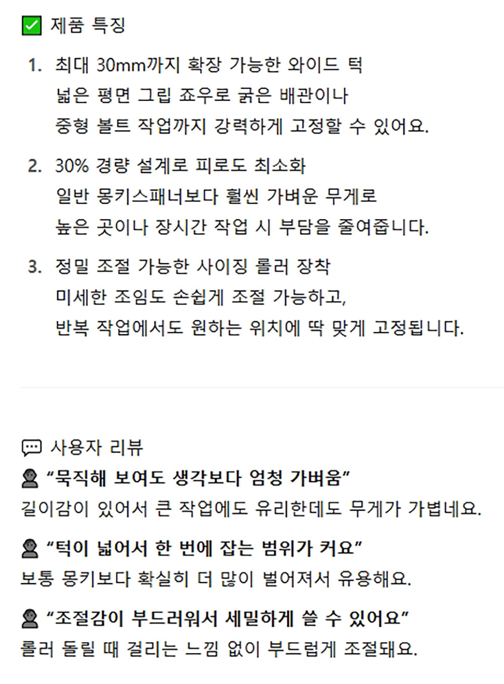 정밀 조절 가능한 롤러 장착 경량 몽키스패너 30mm