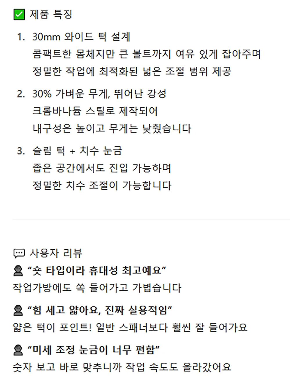 강하지만 가벼운 수공구 경량 몽키스패너 30mm