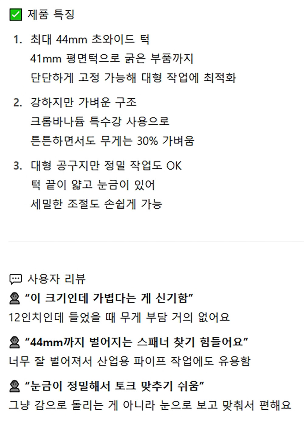 강하지만 가벼운 수공구 경량 몽키스패너 44mm