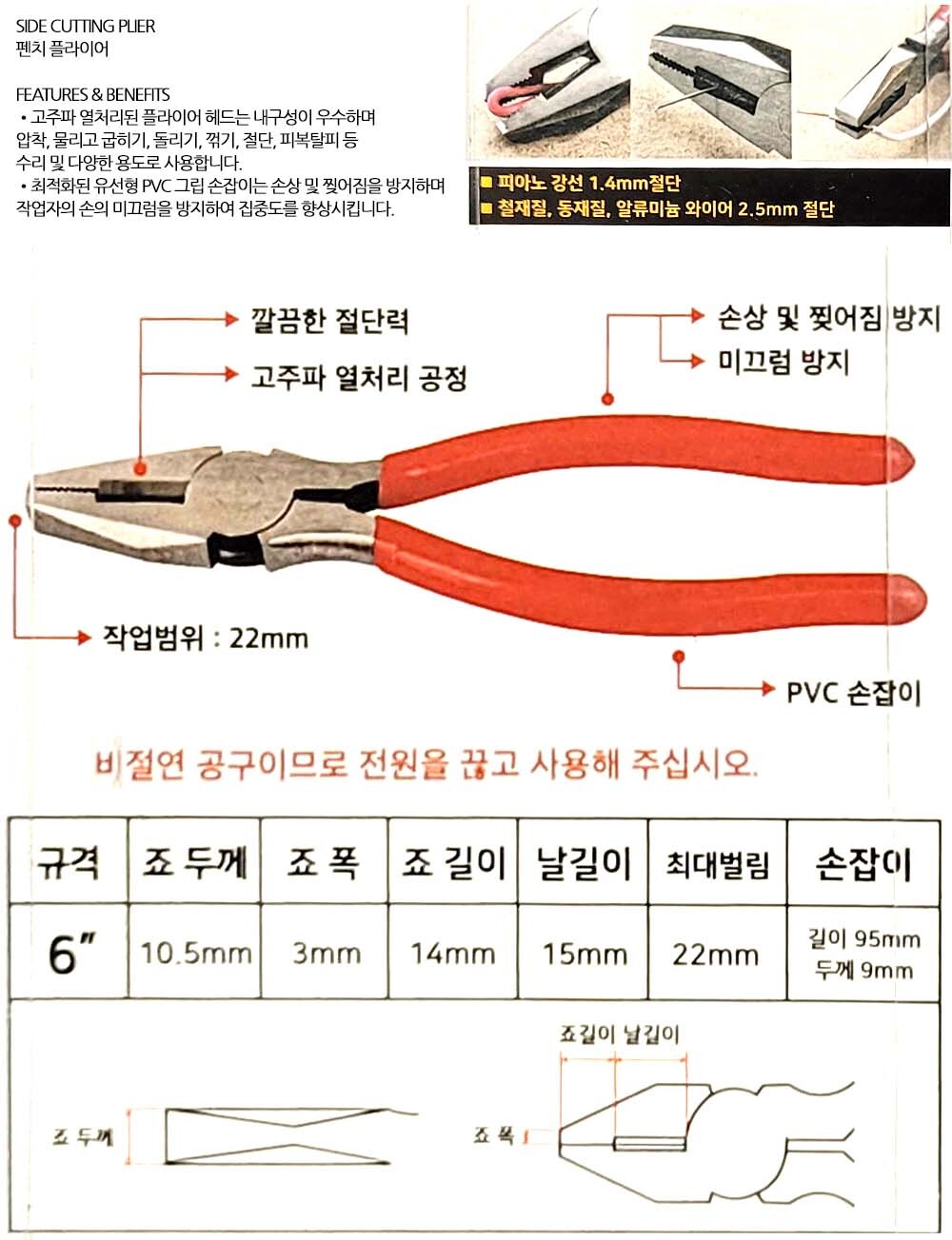깔끔한 절단 고주파 열처리 공정 펜치 플라이어 160mm