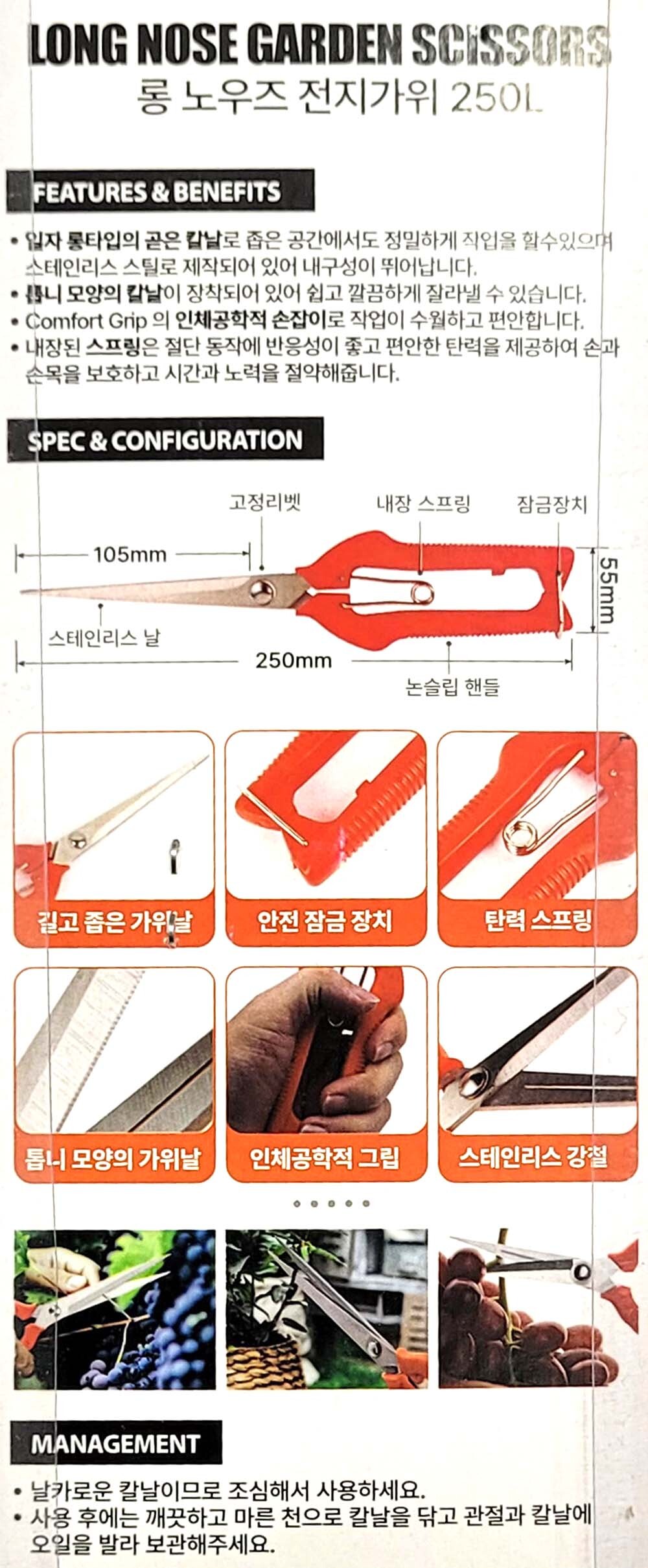 적과 분재 원예 화훼 수공예 롱노우즈 전지가위 250L