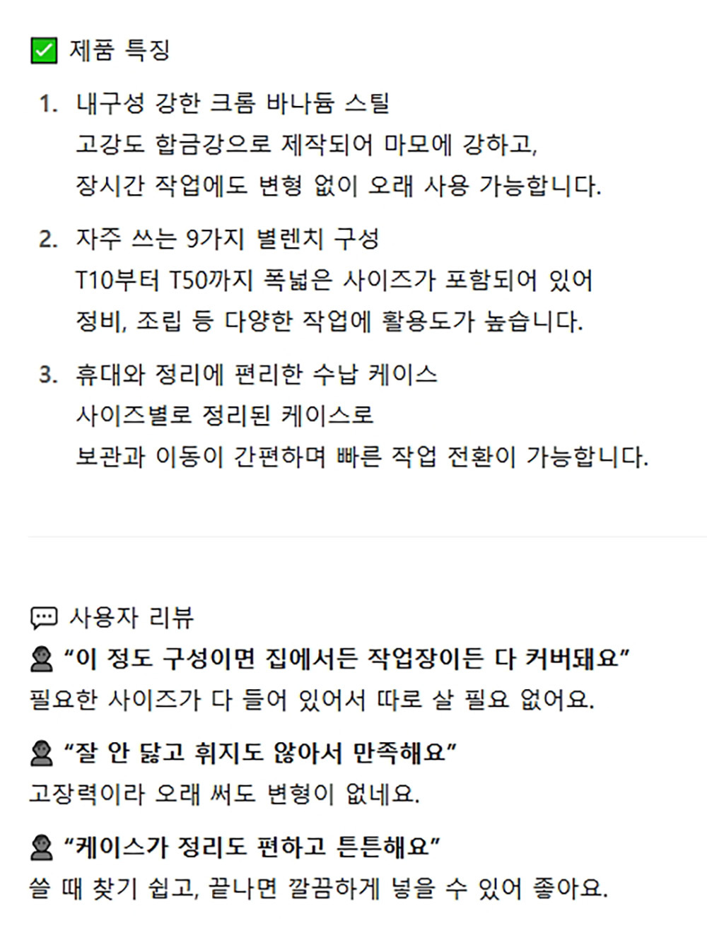 사용 빈도가 잦은 크기 구성 내구성 우수 별렌치 9P