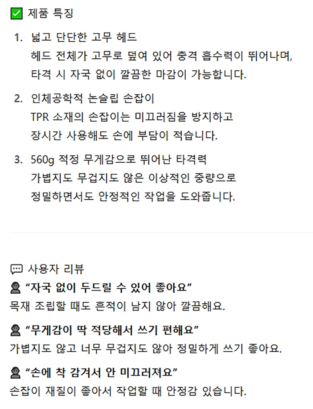 인체공학 손잡이 그립감 좋은 고무망치 560g