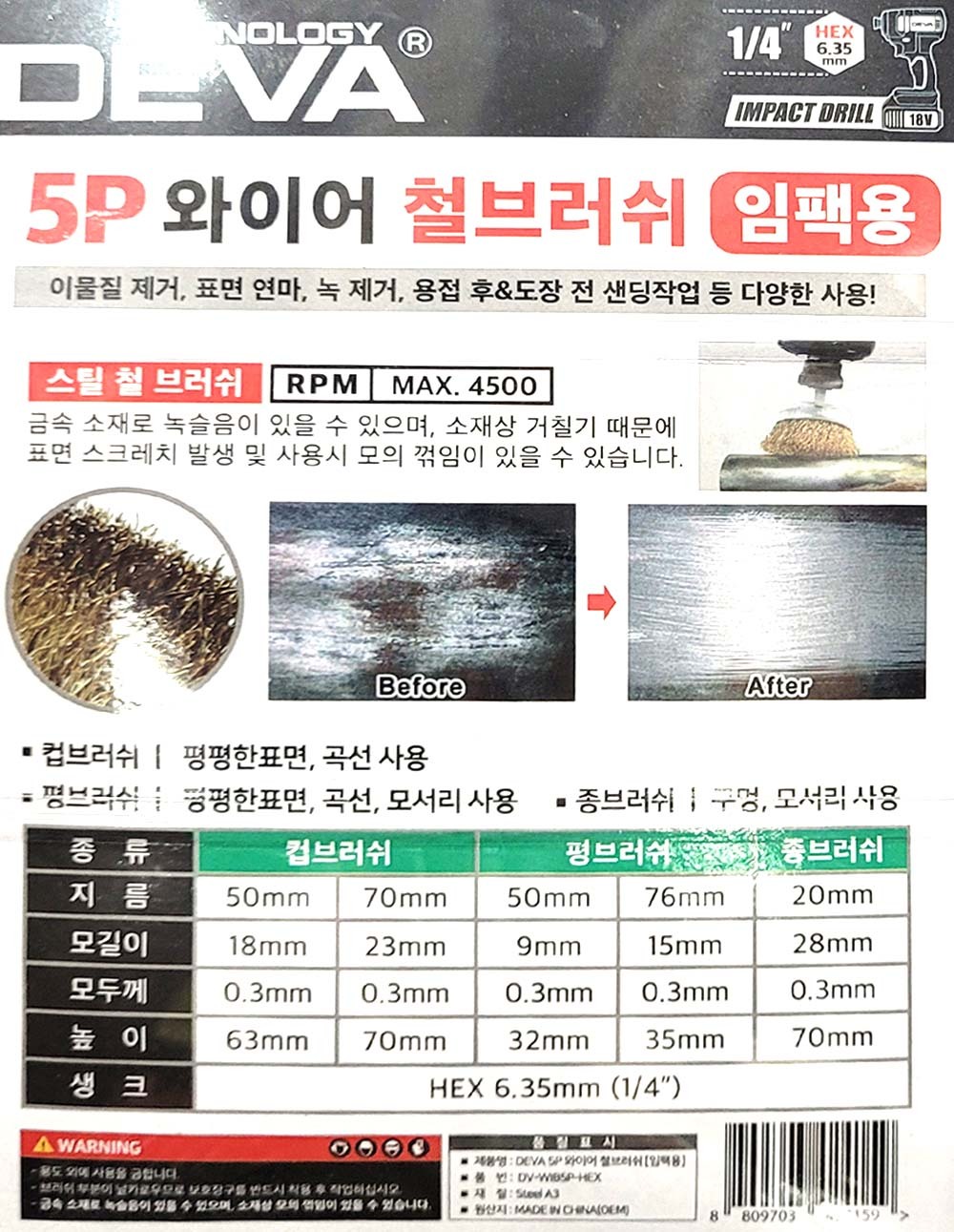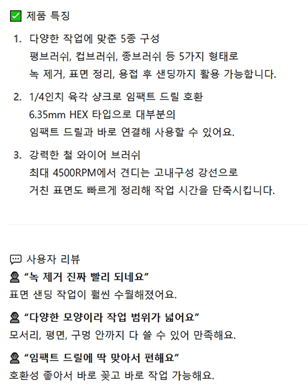 이물질제거 표면연마 녹제거 샌딩 와이어 철브러쉬 5P