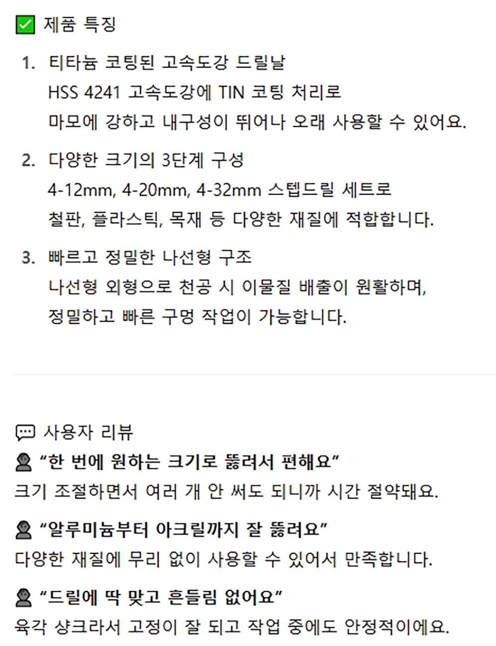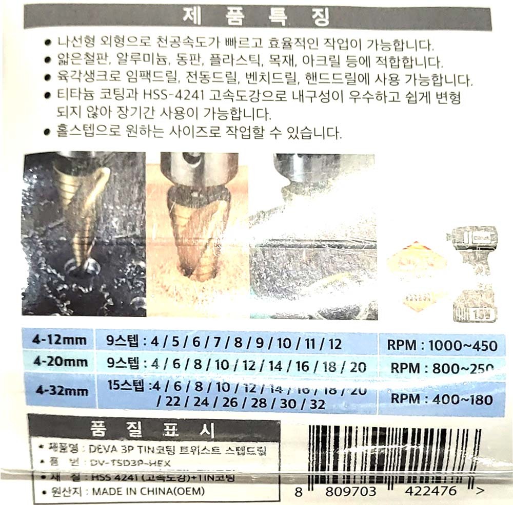 얇은철판 알루미늄 동판 플라스틱 코팅 스텝드릴 3P