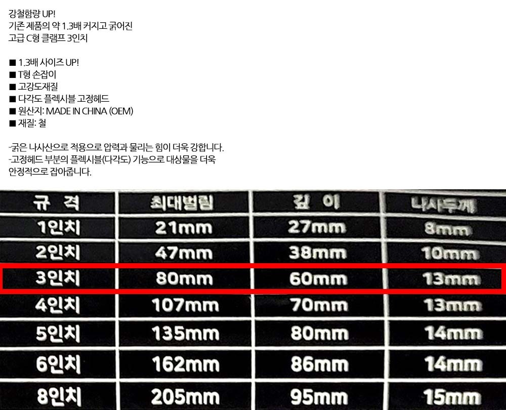다각도 플렉시블 고정헤드 고강도 C형 클램프 80mm