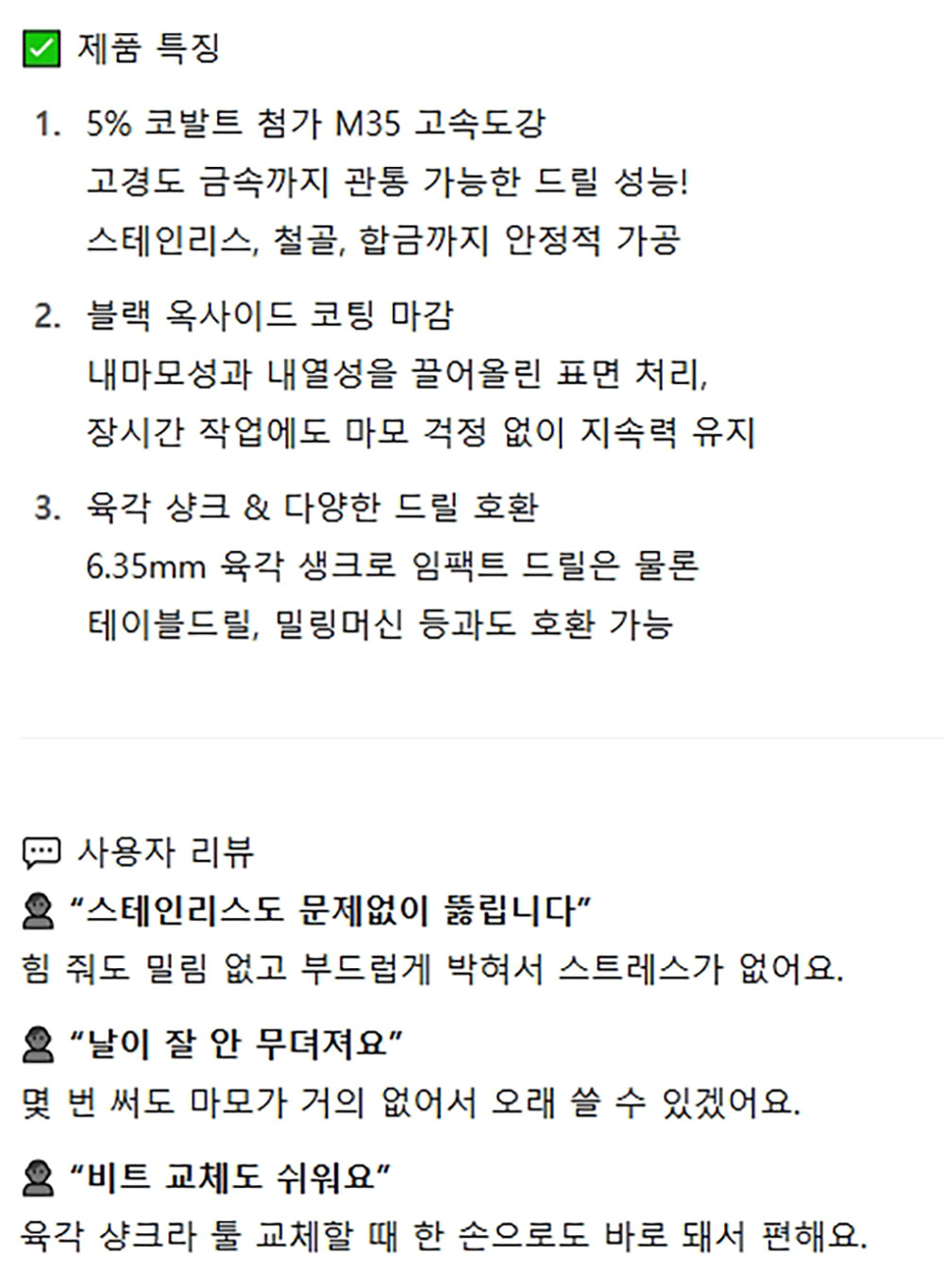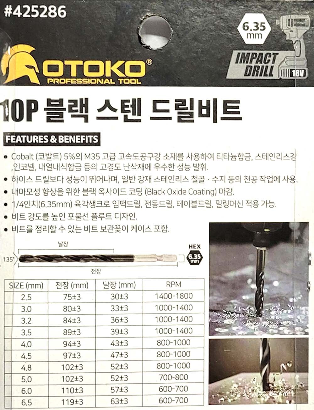 일반강재 철골 수지 천공작업 블랙 스텐 드릴비트 10P