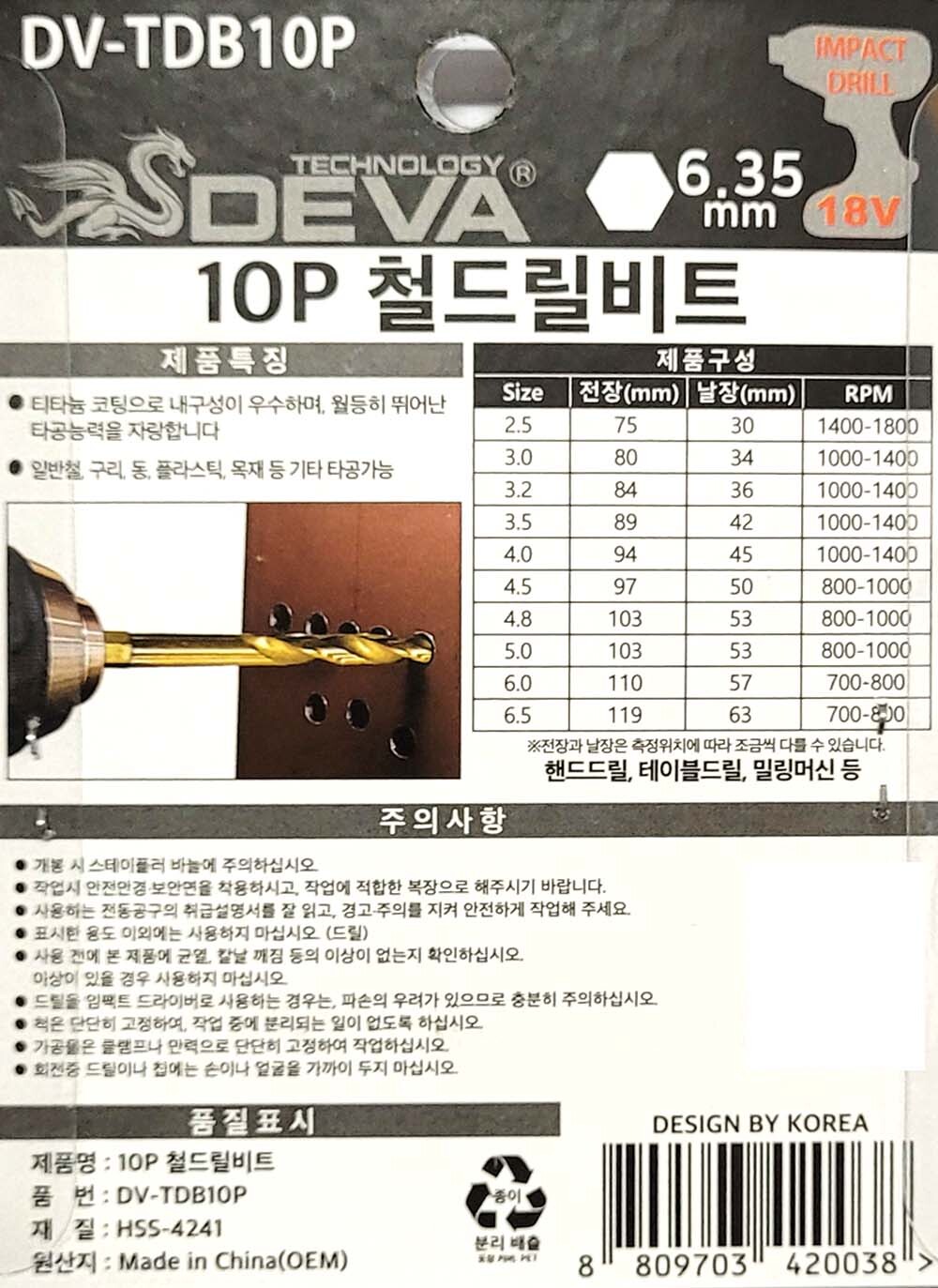티타늄코팅 내구성 UP 구리 동 목재 철드릴비트 10P