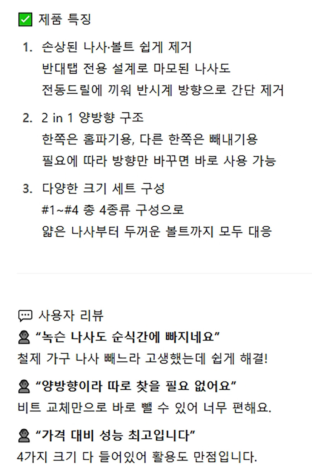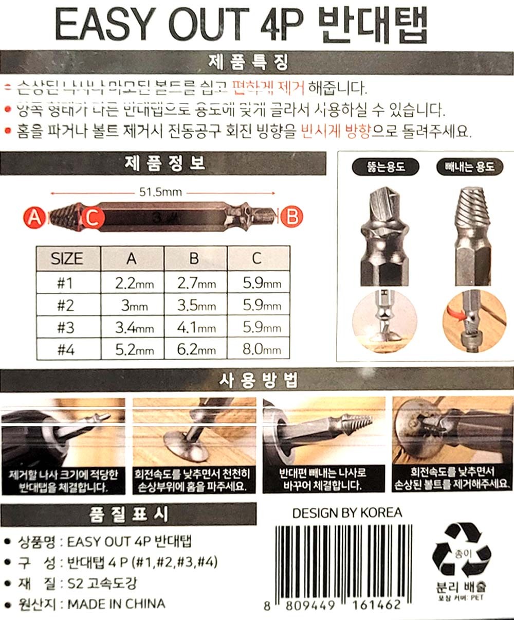 나사 마모된 볼트를 쉽고 편하게 제거 반대탭 4P