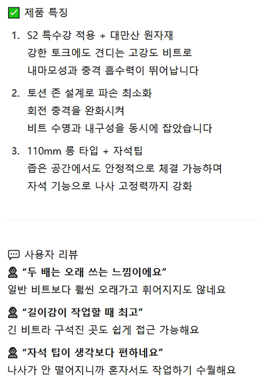 내마모성과 충격흡수력 뛰어납니다 파워 토션비트 10P