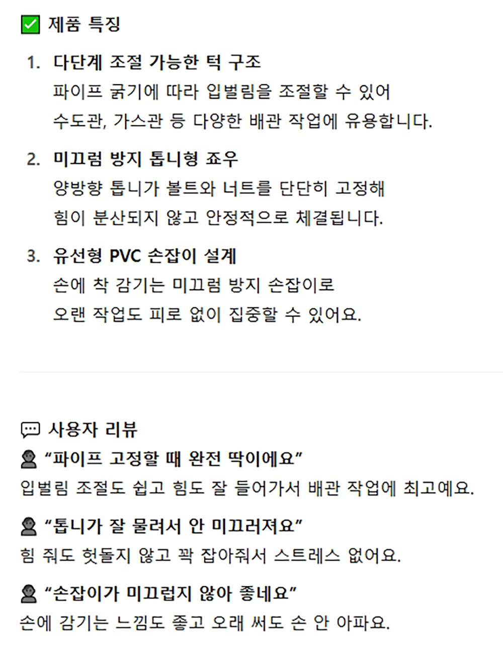 수도관 가스관 배관공사 워터펌프 플라이어 250mm