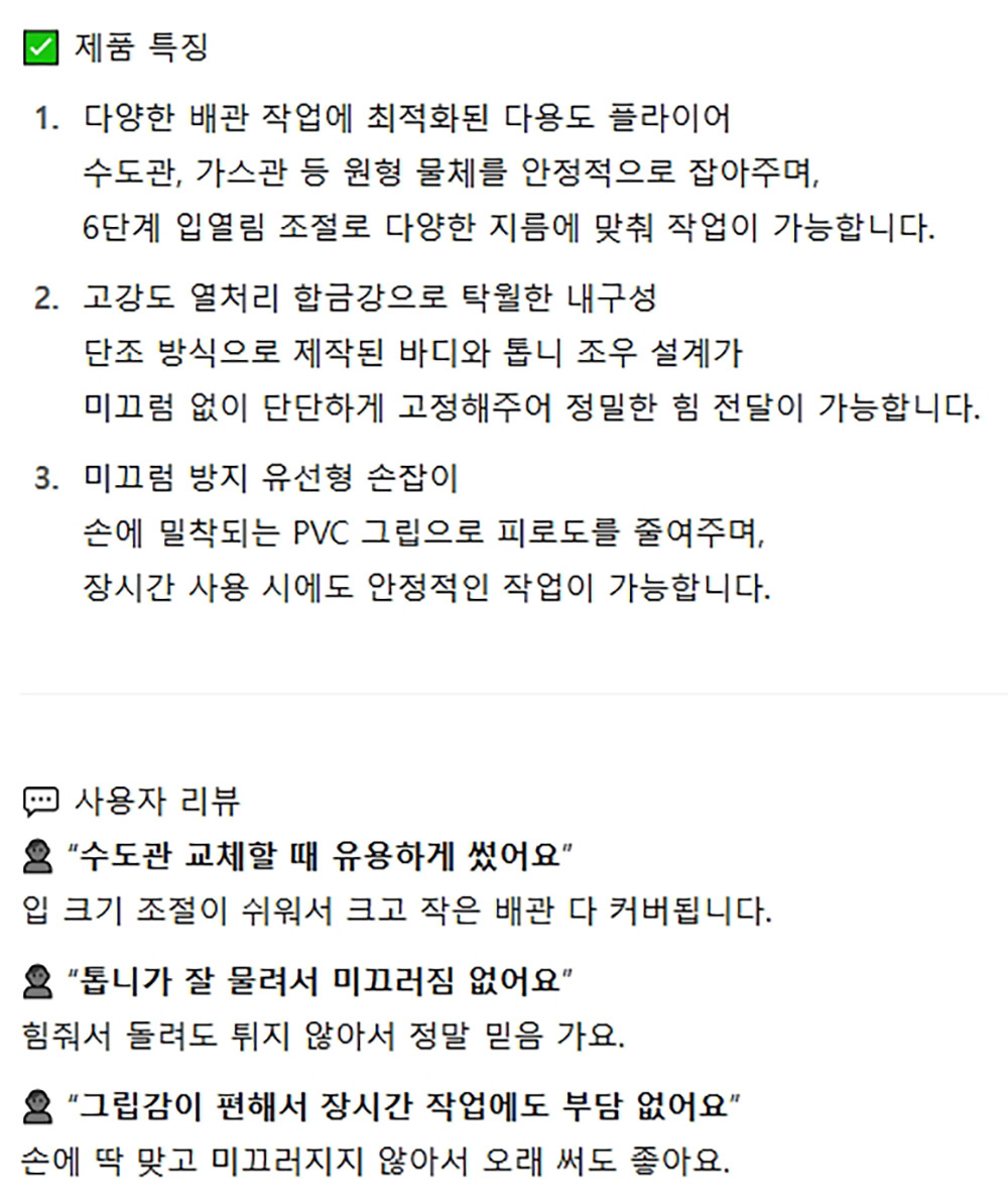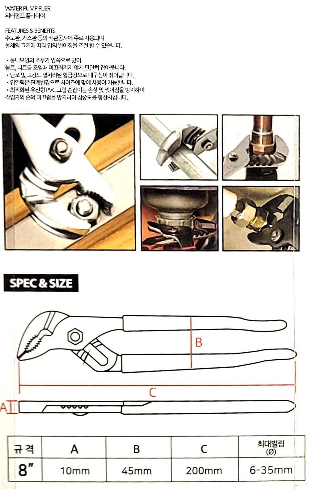수도관 가스관 배관공사 워터펌프 플라이어 200mm