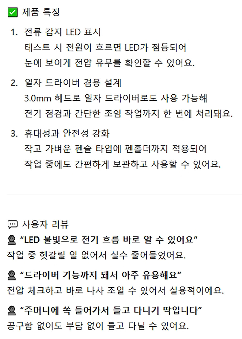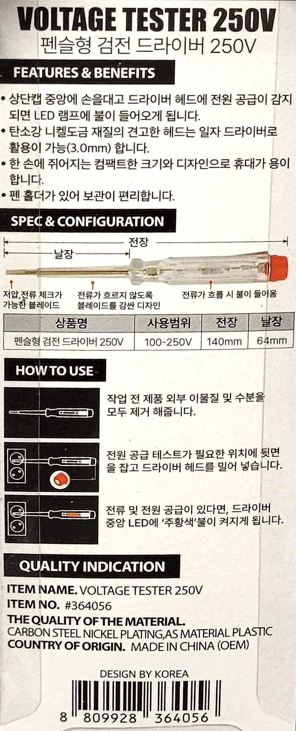 콘센트 전원공급장치 전력체크가능 검전드라이버 250V