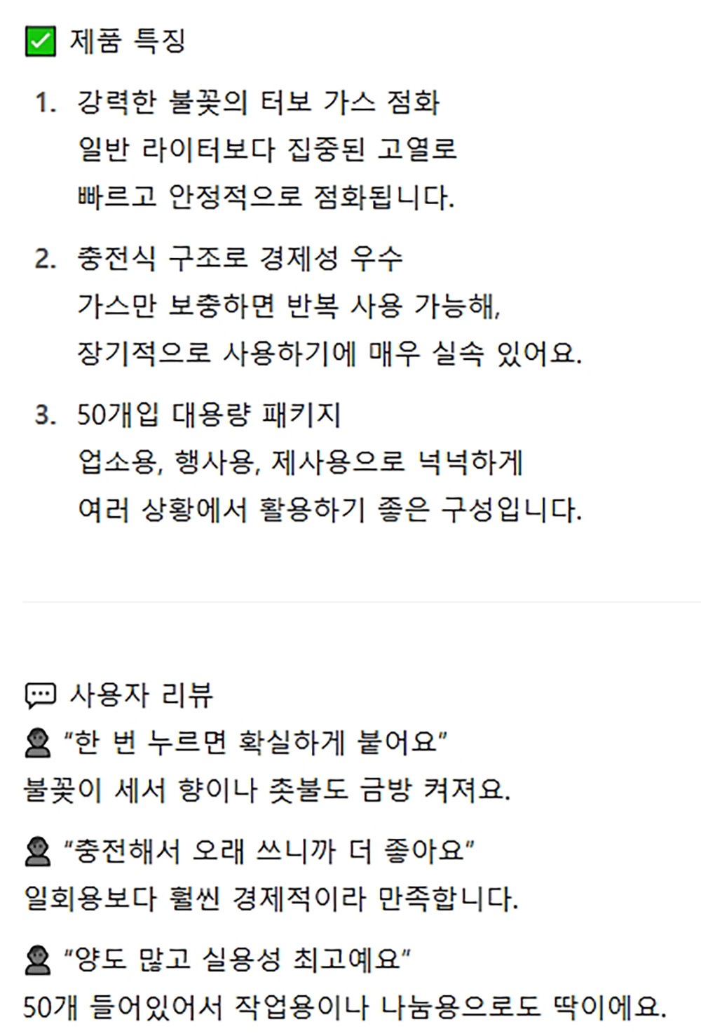 강력한 불꽃 충전식구조 터보 가스라이타 50입