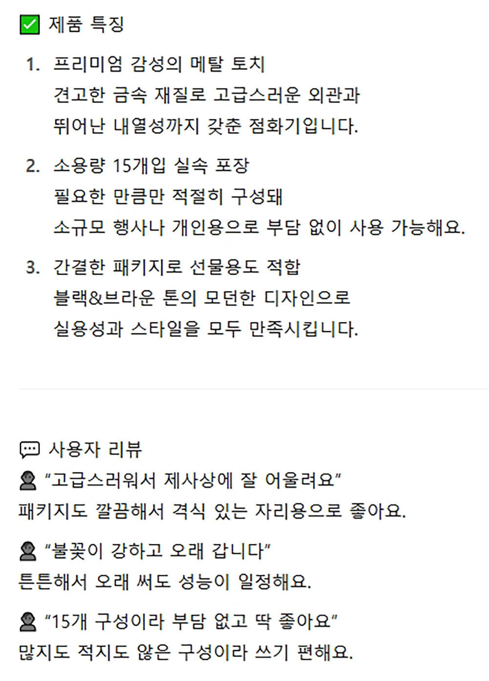 프리미엄 감성 메탈 토치 라이터 15입