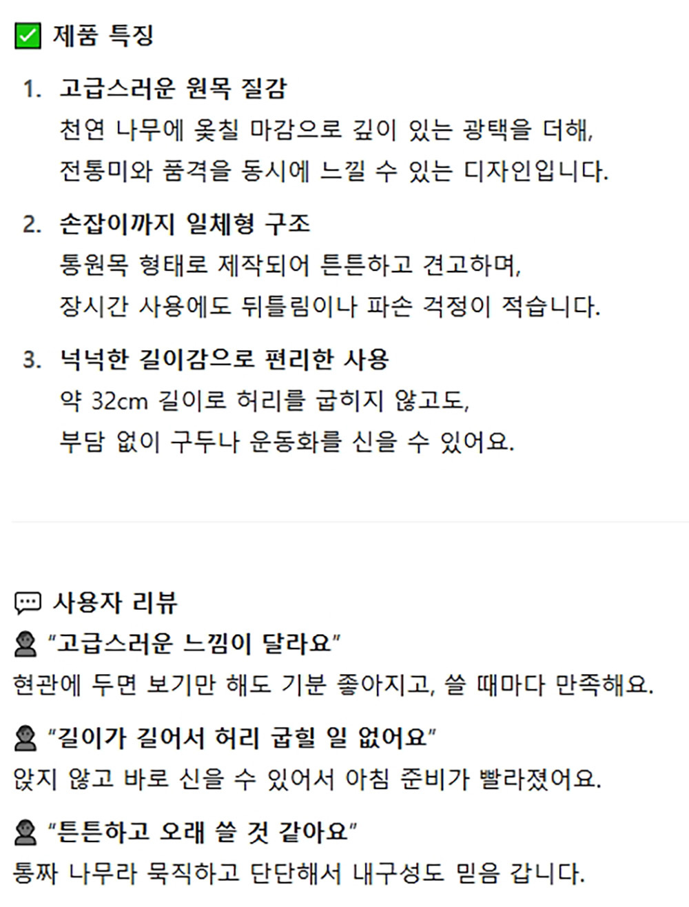 고급스러운 원목 질감 옻칠 마감 구두헤라 구두주걱