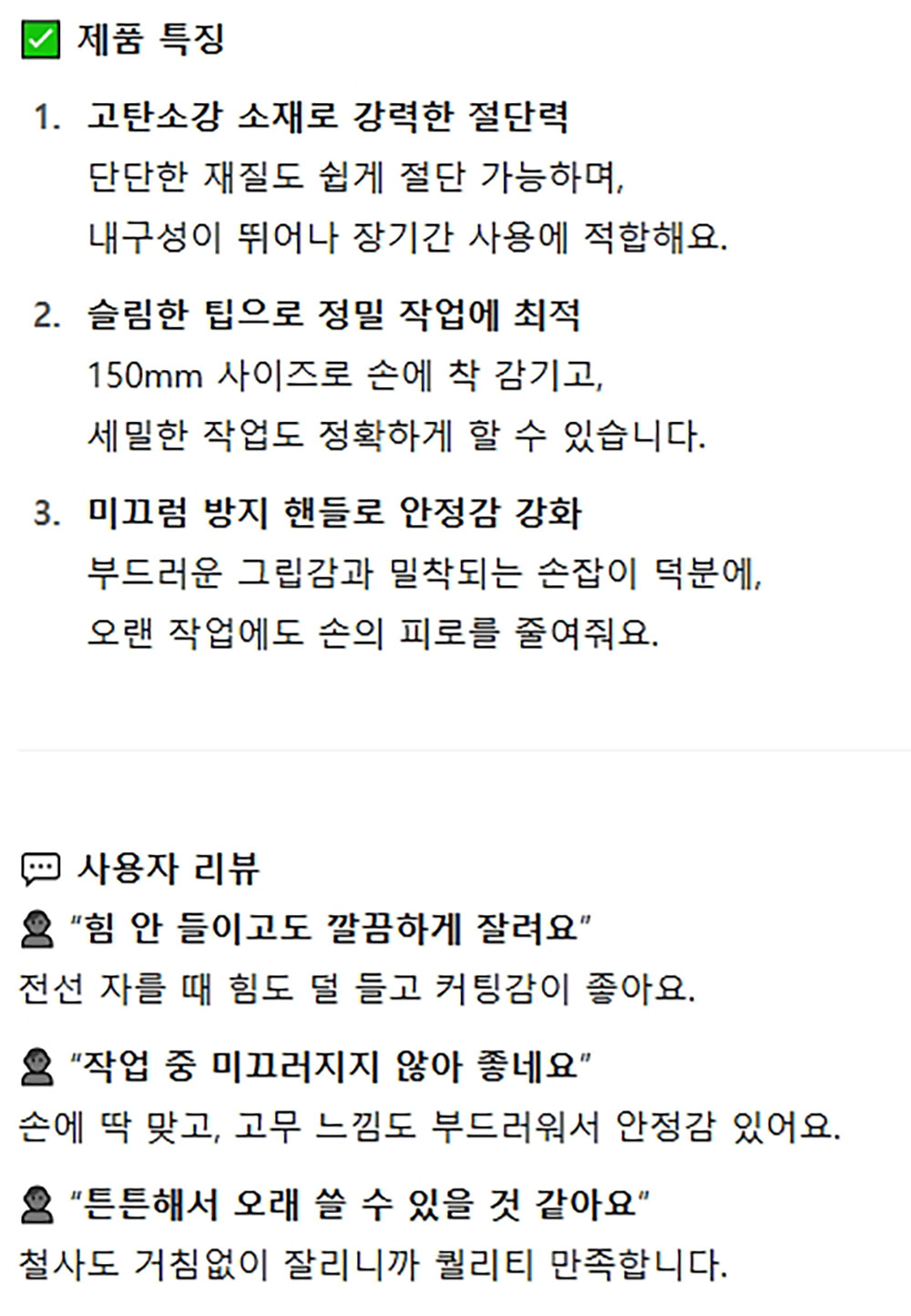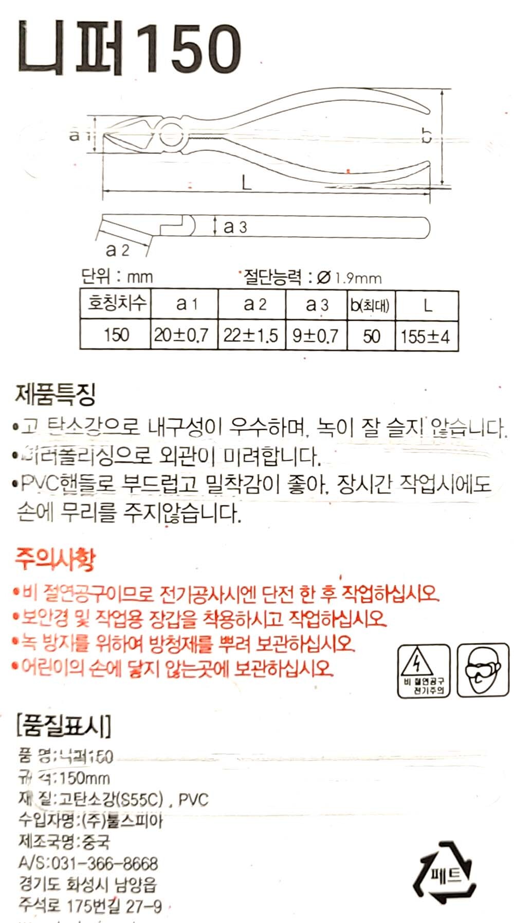 힘 안 들이고도 깔끔하 잘려요 수공구 니퍼 150mm