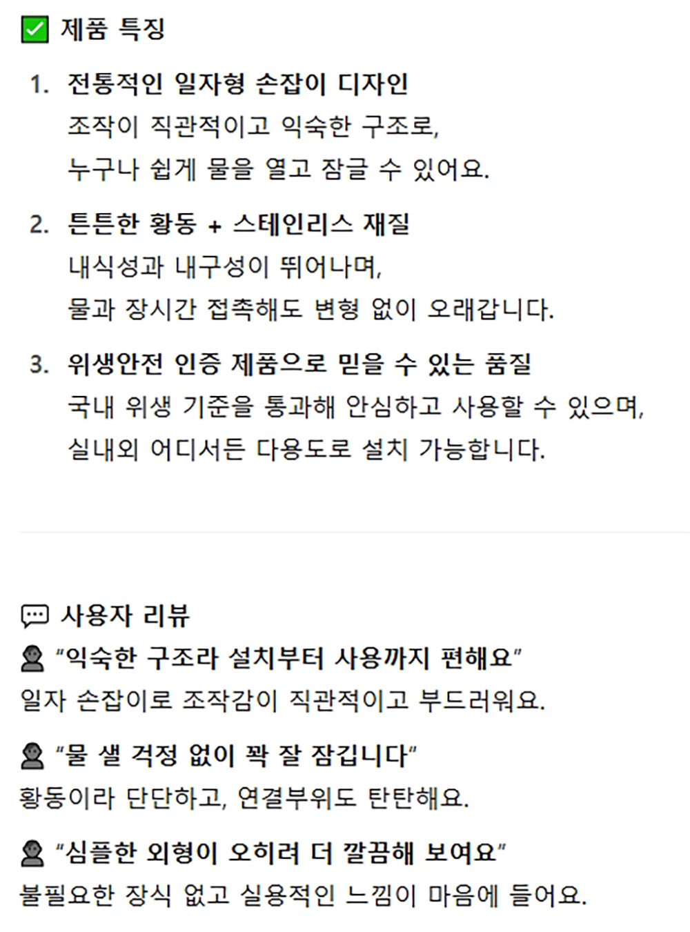 튼튼한 황동 스테인리스 재질 내구성 가로 수도꼭지
